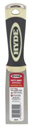 1-1 / 2-Inch Flexible Pro Project Putty Knife; Differentiated overmold handles for cleaning and spreading; Patent pending design; Straight-ground for flexibility and hardened carbon steel blades for durability
