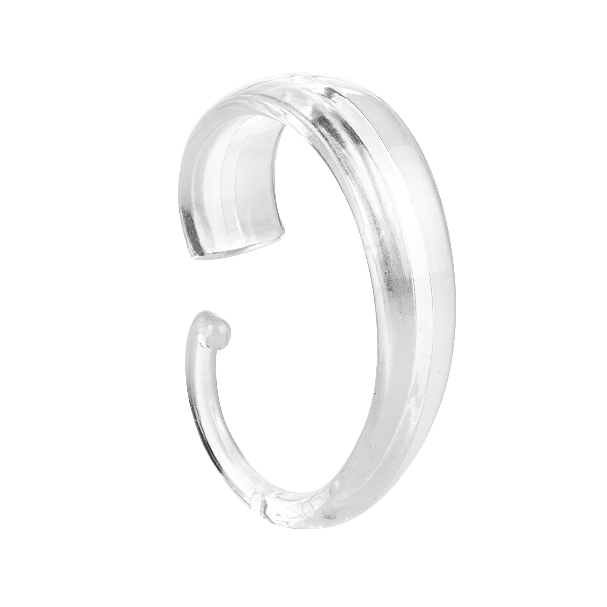 Add a touch of style and function to your bathroom with the iDesign Shower Curtain Hooks. This set of twelve c-hooks is designed to securely keep both shower curtains and liners in place and the smooth surface effortlessly glides over the rod while getting into and out of the shower. The open c-hook shaped design easily hangs over most standard-sized shower rods. Simply attach to the shower curtain and liner and hang over the shower rod for easy set up. The durable BPA-free plastic construction is made to last and stands up to every day use while the modern transparent design instantly upgrades any shower or bathtub. Measuring 2.38 x 1.75 x 0.5 each these shower curtain hooks are ideal for use with a variety of shower curtain liner and rod sizes.Specifications
