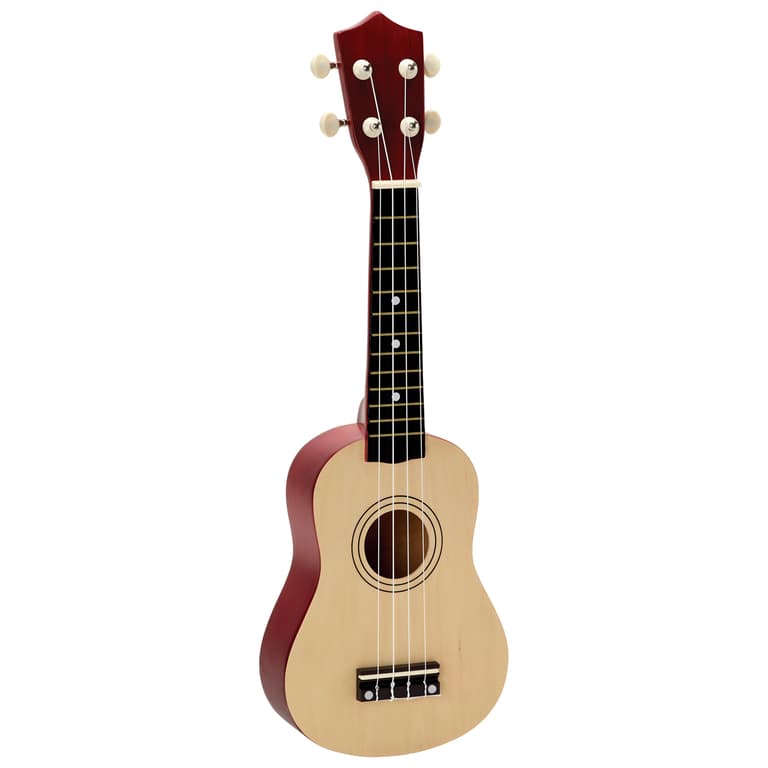 12 MEDIUM SIZE BRASS FRETS; 4 NYLON STRINGS; Basswood body neck and headstock; Easy to play; PRECISION TUNERS; Synthetic ebony fingerboard with satin touch finish; Weight: 1.21 lbs; Wood plastics metal