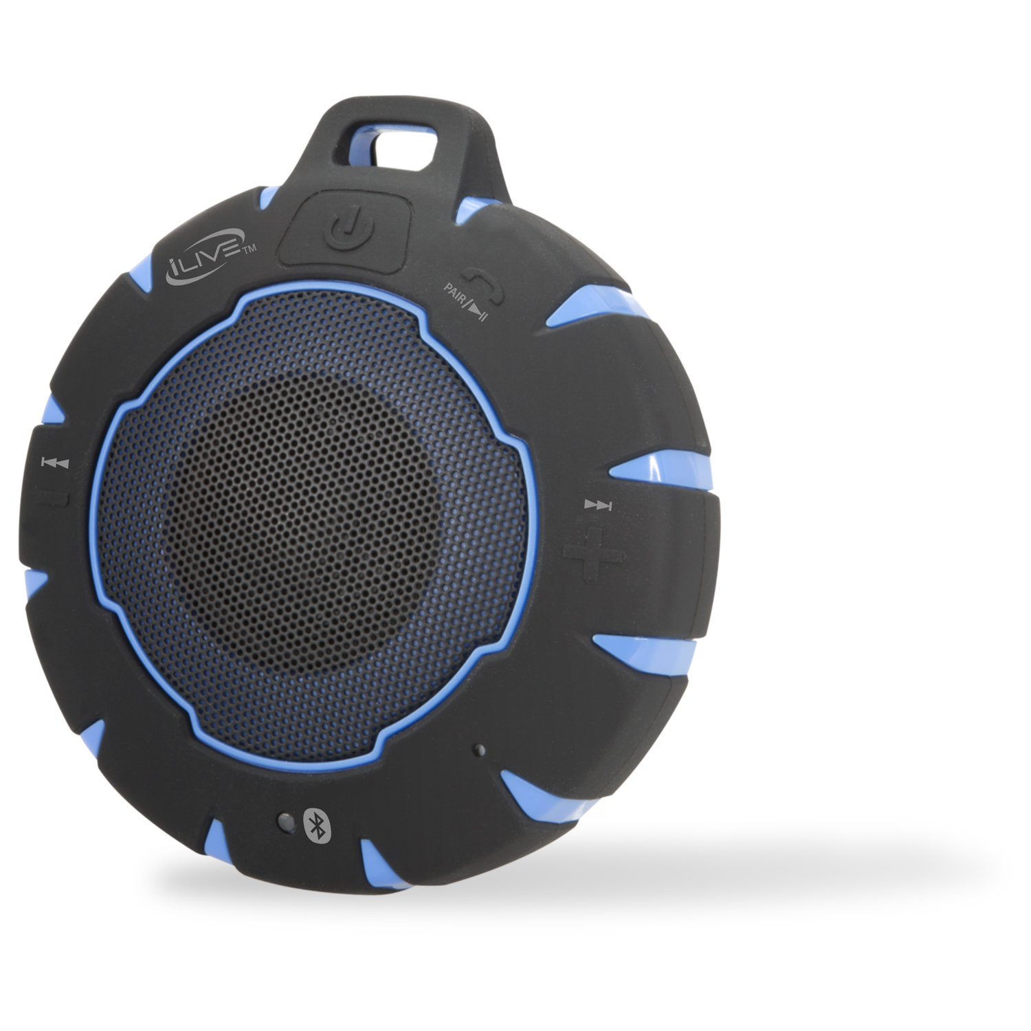Give your adventures a soundtrack with a rugged speaker thats up to the task. The iLive Waterproof Wireless Speaker is perfect for the outdoors. Sand-proof and mud-proof this speaker features a rubberized coating and will float if dropped in water. It has a built-in microphone and handsfree speakerphone for when you are on-the-go. With a wireless range of 60 feet this speaker has a built-in rechargeable battery with approximate battery life of 8 hours at 50% volume. Includes a micro-USB to USB cable and detachable carabiner clip. Hit the trail weather the storm conquer the world whatever your feat youll be ready. Black/Blue. iLive is the ideal choice for your music enjoyment needs. LED pairing indicator.Specifications