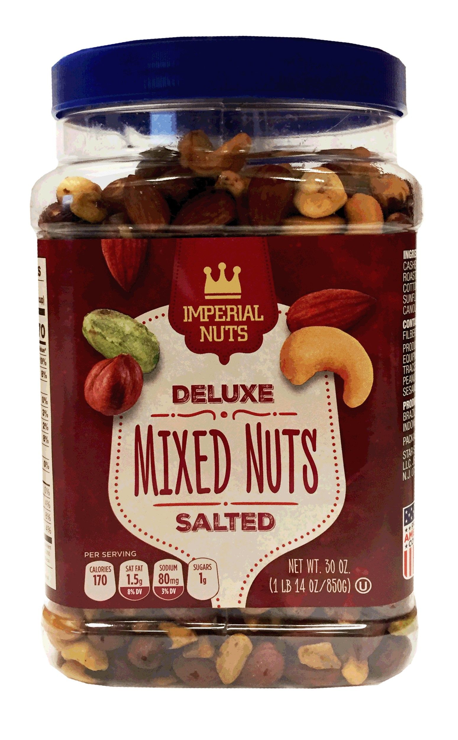 For your next snack attack, reach for this canister of deluxe mixed nuts from Imperial Nuts. Offering a variety of nuts, including almonds, cashews, filberts and pistachios, there's something for everyone in this container. Roasted and then salted.Specifications