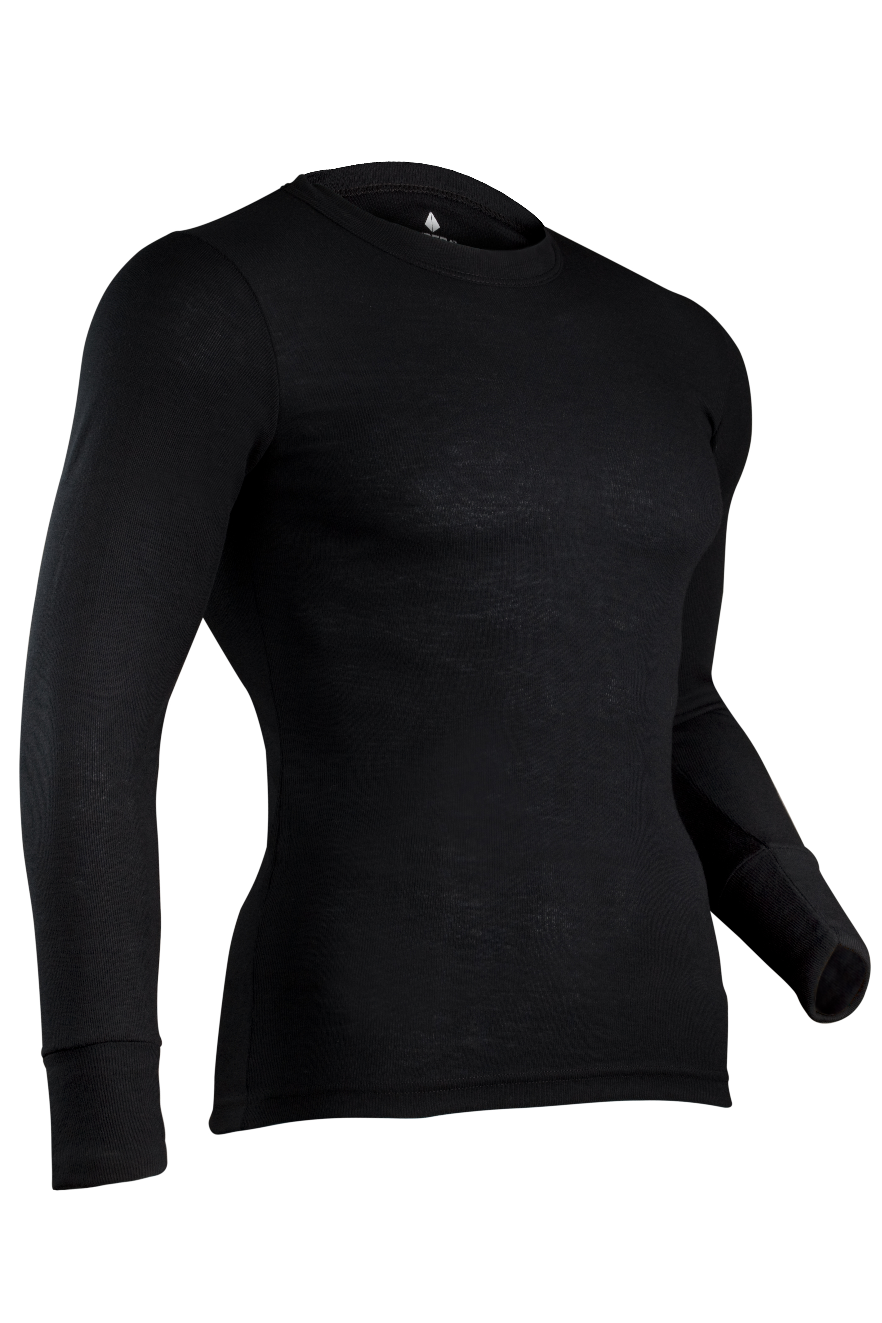 CREW; RETAINS BODY HEAT; RIBBED CUFF; tagless