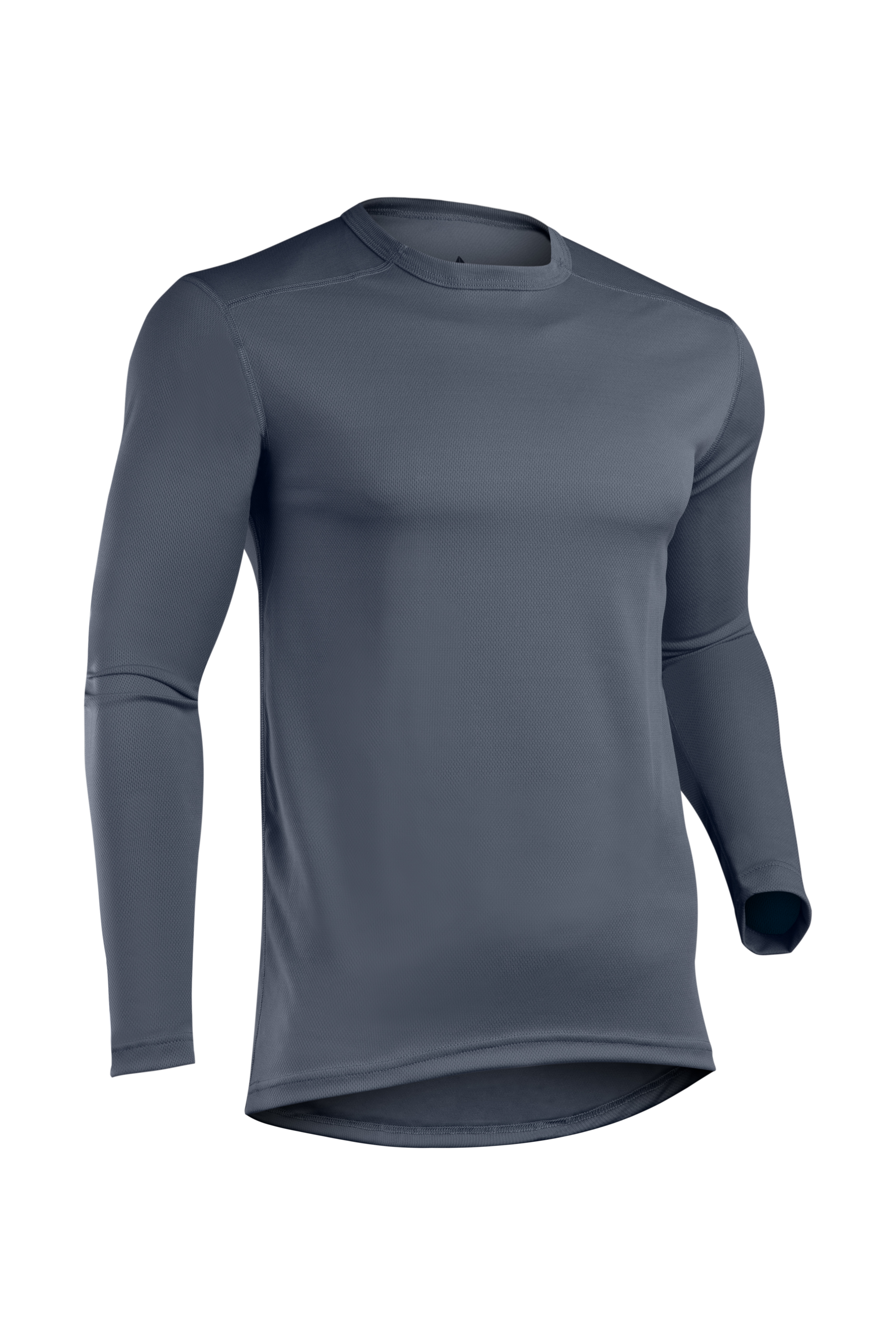 CREW NECK; FLATLOCK SEAMS; MESH KNIT; PERFORMANCE POLYESTER; RATED FOR COLD TEMPERATURES; RIB CUFFS; TAGLESS