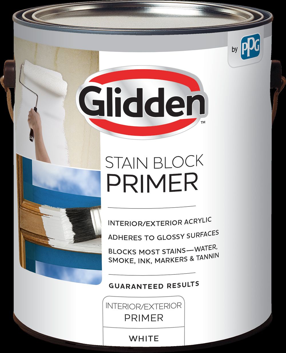 Glidden Stain Block Primer is an interior/exterior acrylic latex primer that blocks most stains, can be used on wood and adheres to a variety of glossy and matte surfaces.Specifications