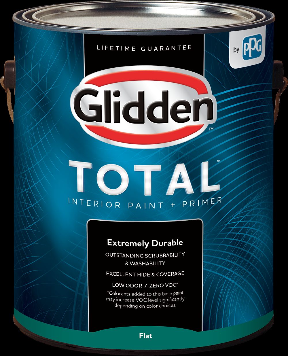 Glidden Total Interior Paint + Primer is extremely durable so it holds up to whatever life throws at it. This low odor/zero VOC paint has outstanding scrubbability and washability so repeated frequent cleaning is no problem. Get the job done right with fewer costs with excellent hide and coverage. All this and its backed by our lifetime guarantee.Specifications