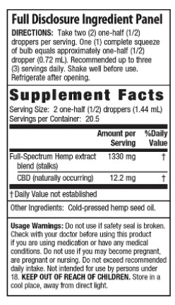 Each 1 oz. bottle contains over 20 daily servings of CBD; Pure Full-Spectrum Hemp Oil