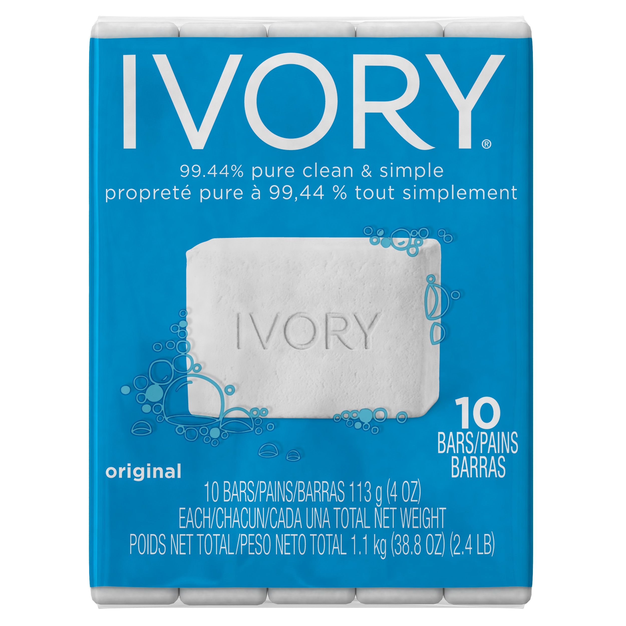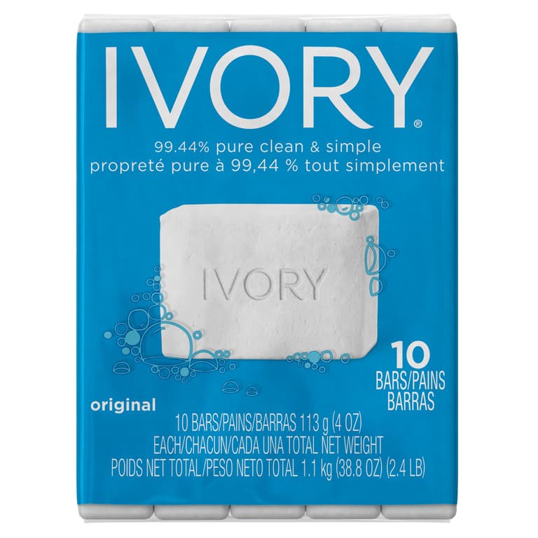 Ivory Bar Soap helps to provide a simple effective clean for the entire family without breaking the bank! It is free of dyes and heavy perfumes and is 99.44% PURE. Ivory is recommended by 4 out of 5 moms and has been a proven and trusted brand for over 130 years. Also try Ivory Body Wash for a simple clean that leaves skin smooth and hydrated vs. regular soap.Specifications
