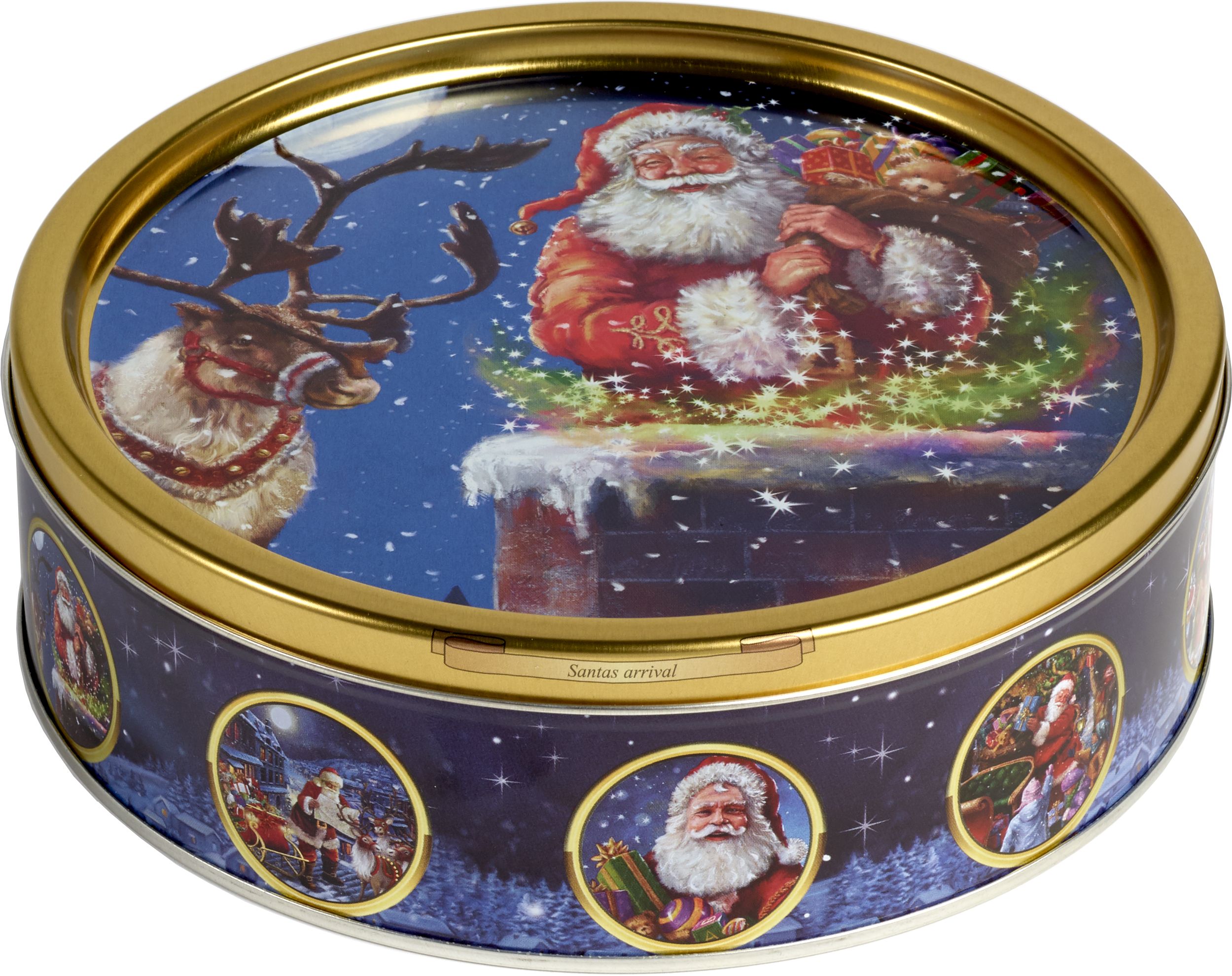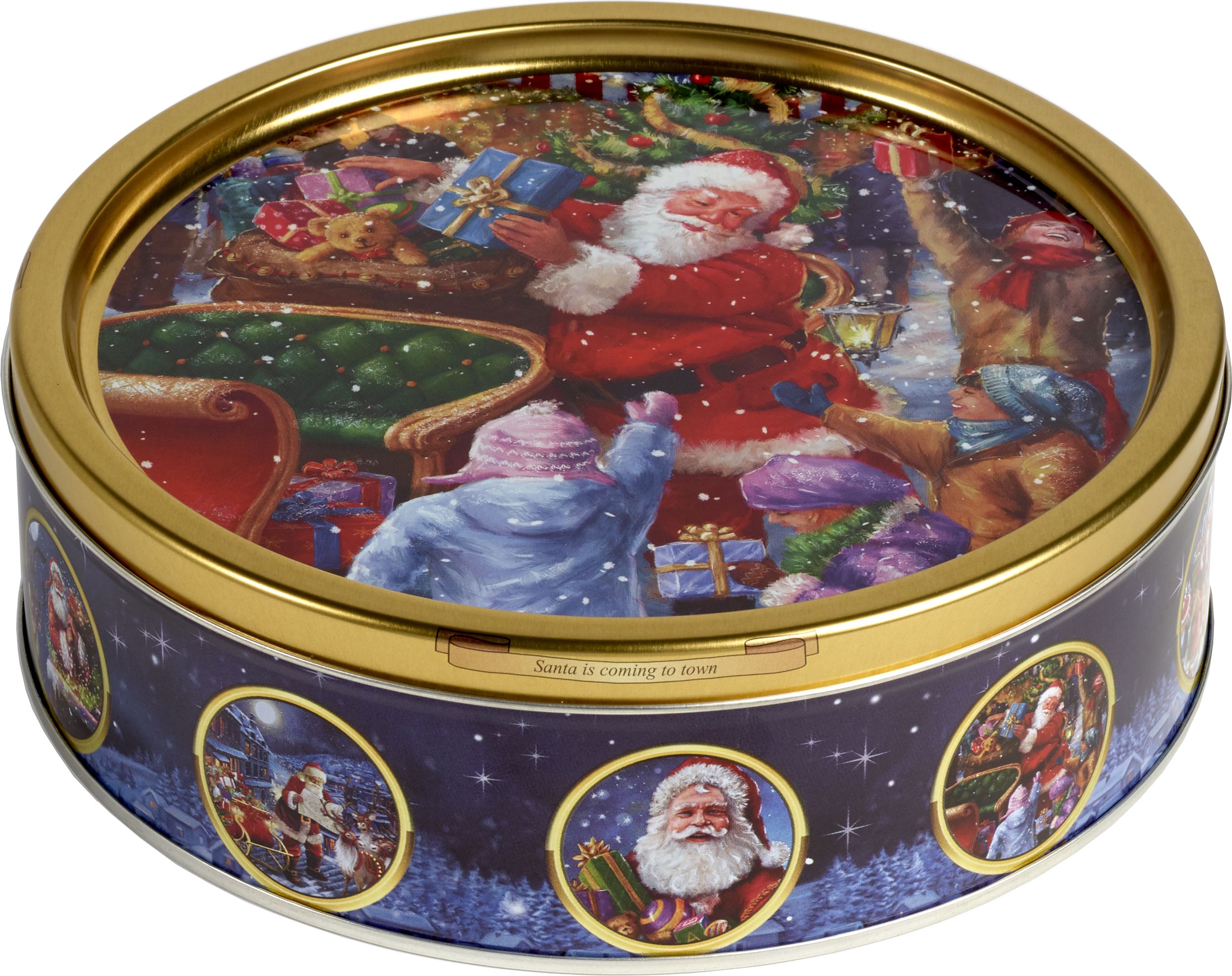 JACOBSENS BAKERY NOSTALGIC SANTA EMBOSSED COOKIES TIN 12 OZ (COLORS & STYLES MAY VARY)