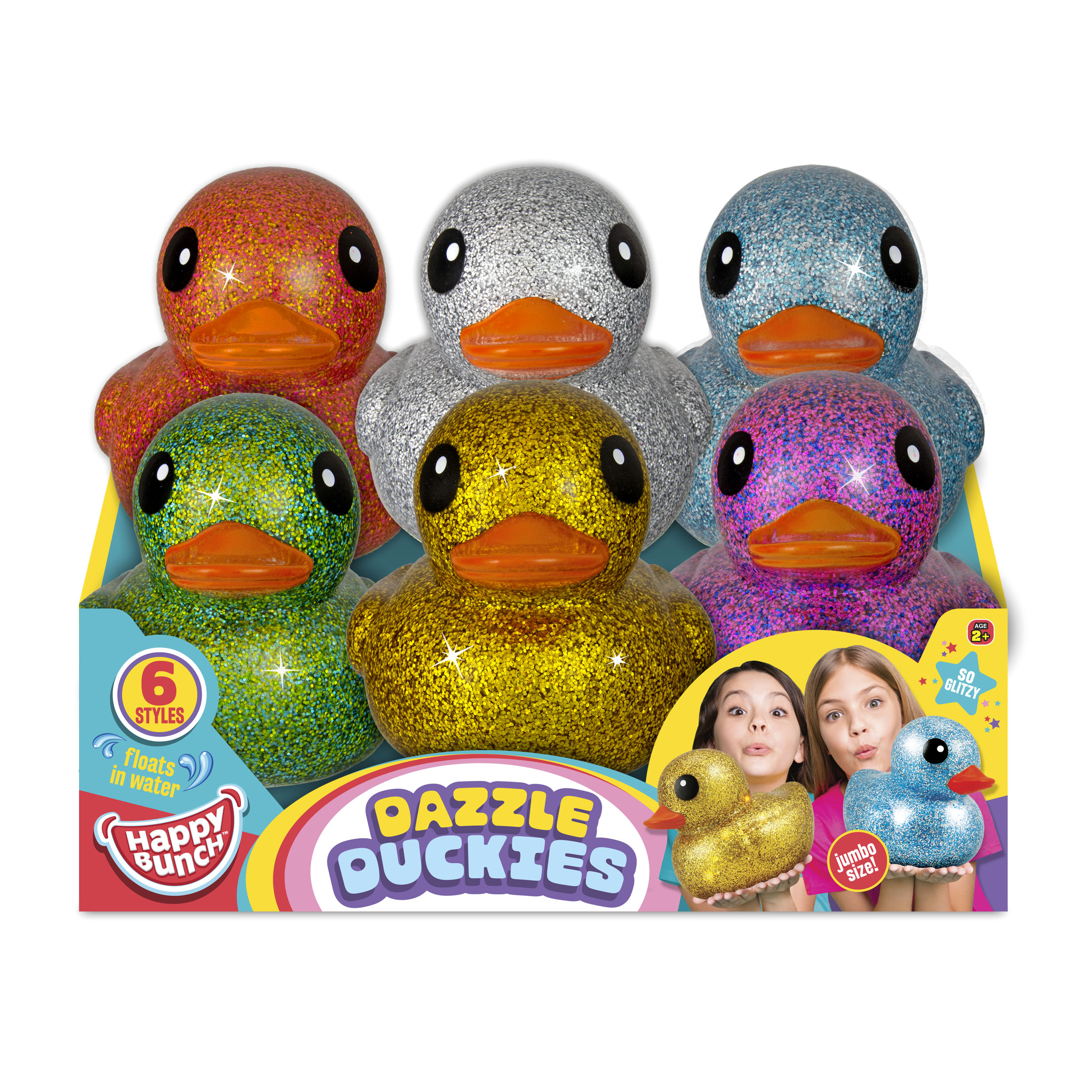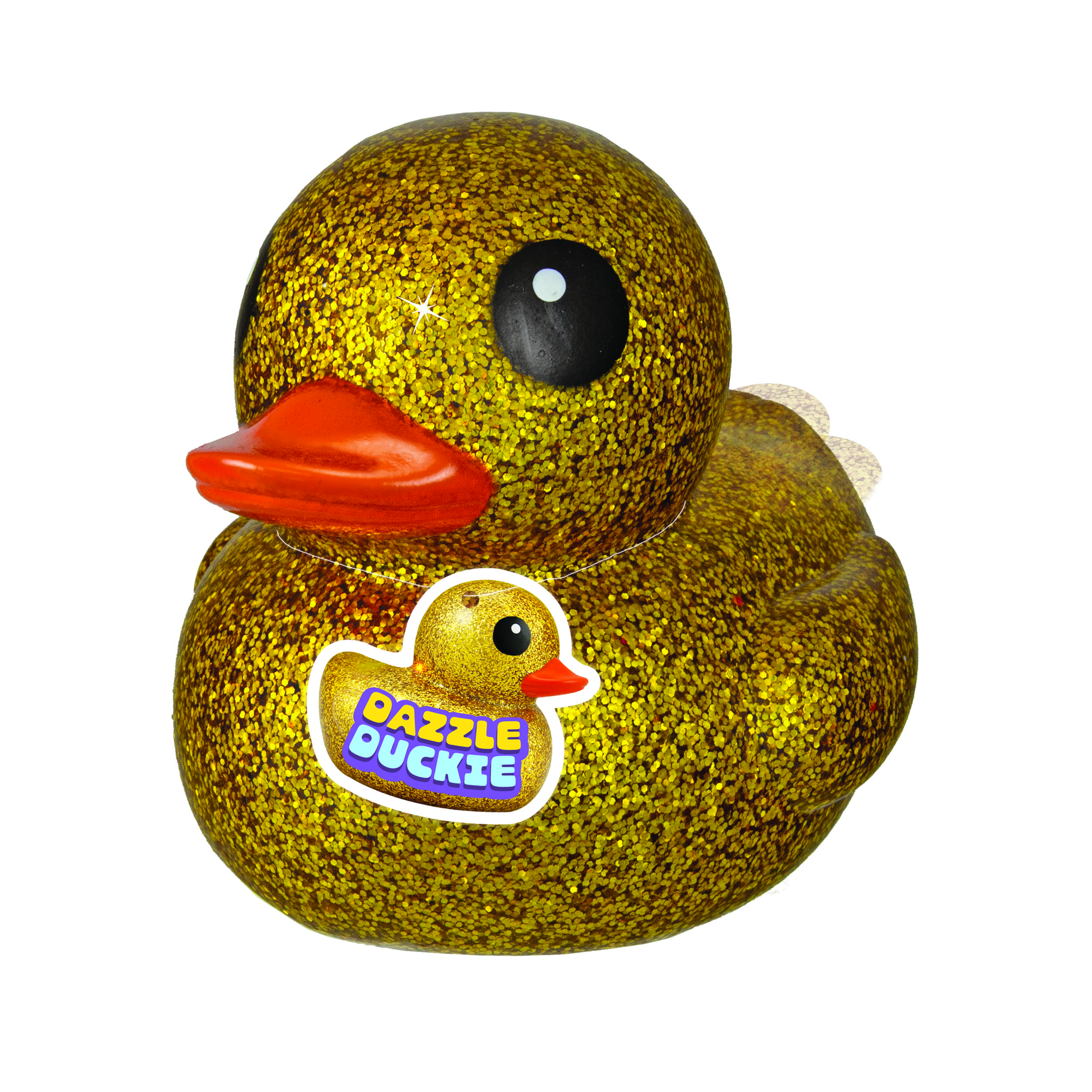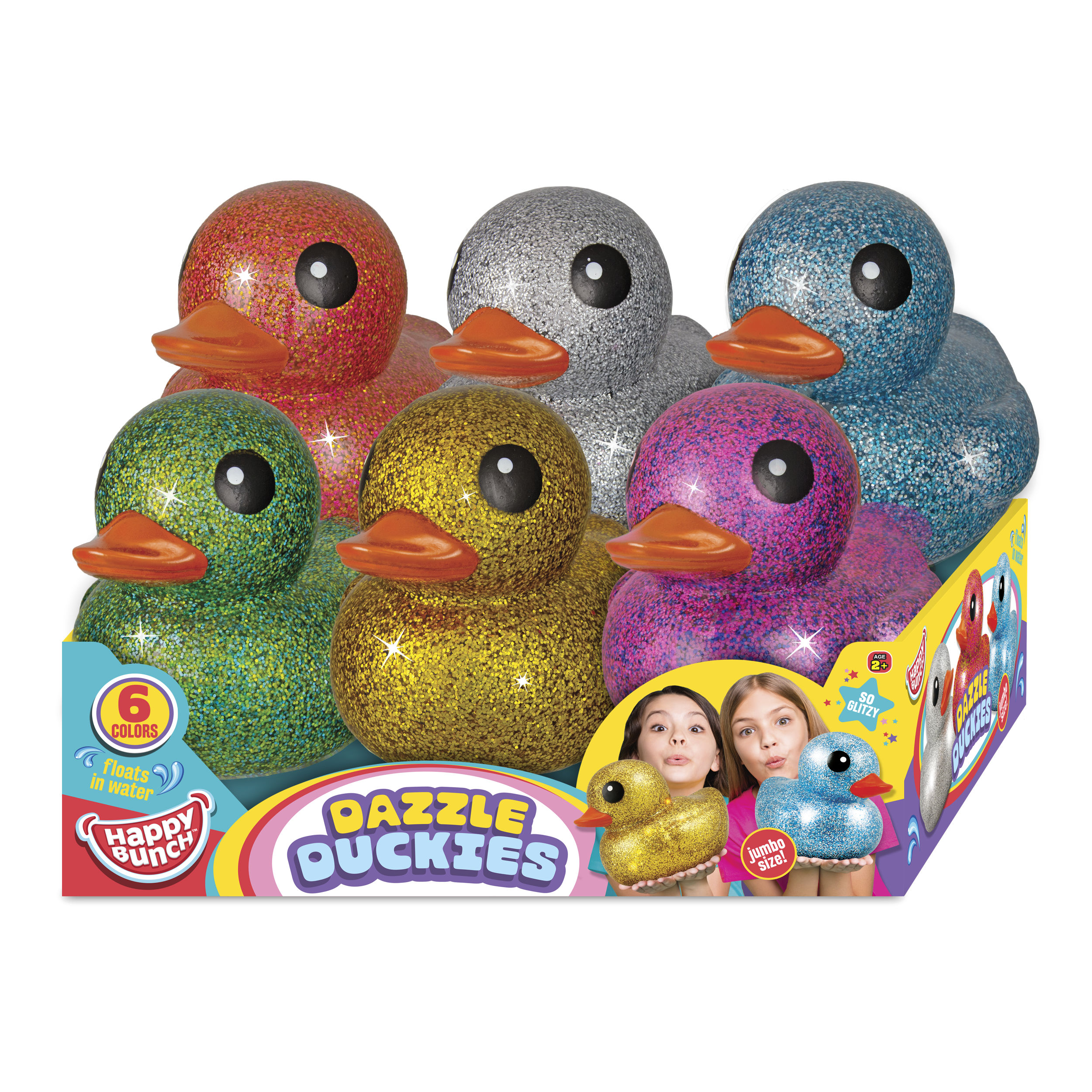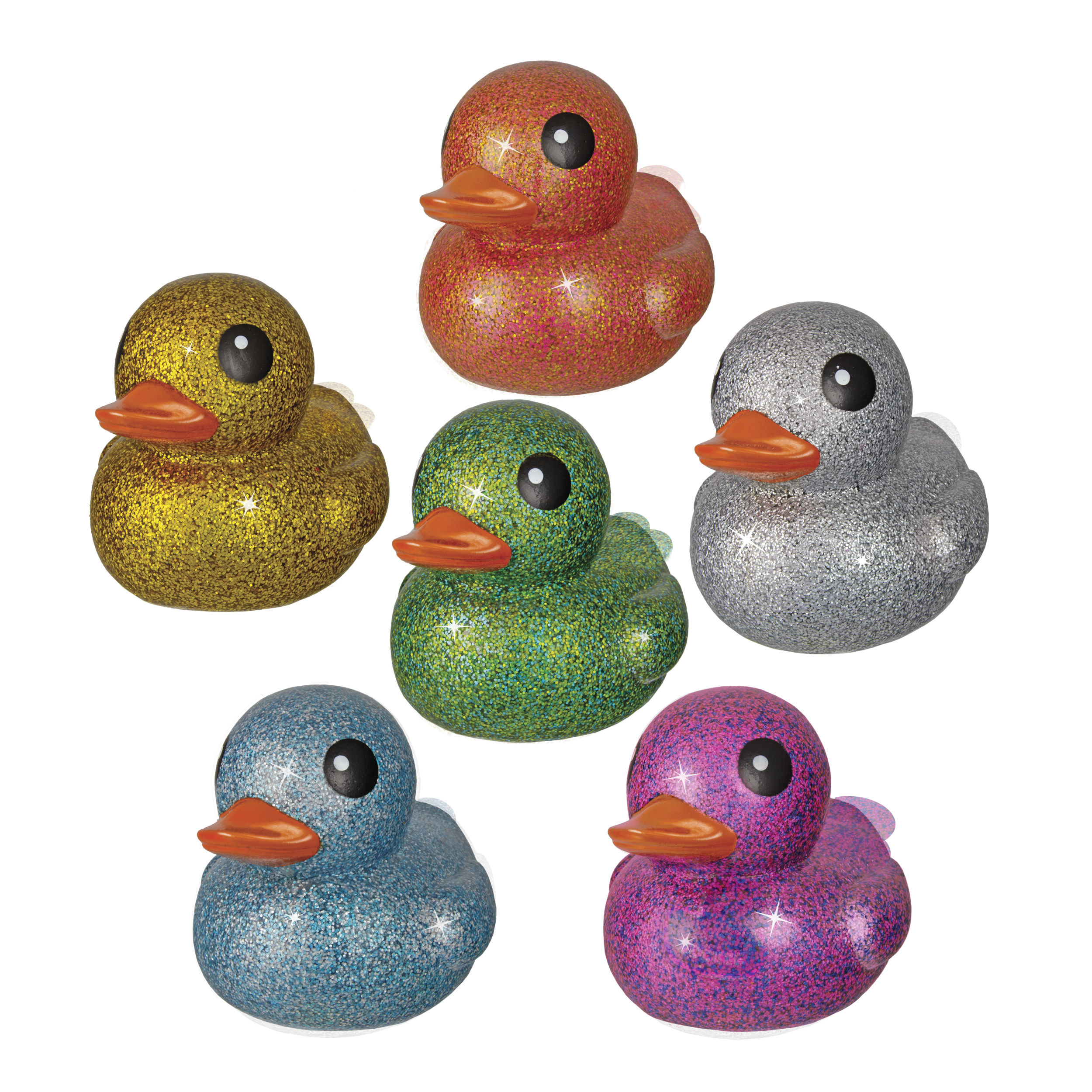 Comes in 6 colors.; Good for bath tubs or pools.; Jumbo size glitzy duckies that floats in water.