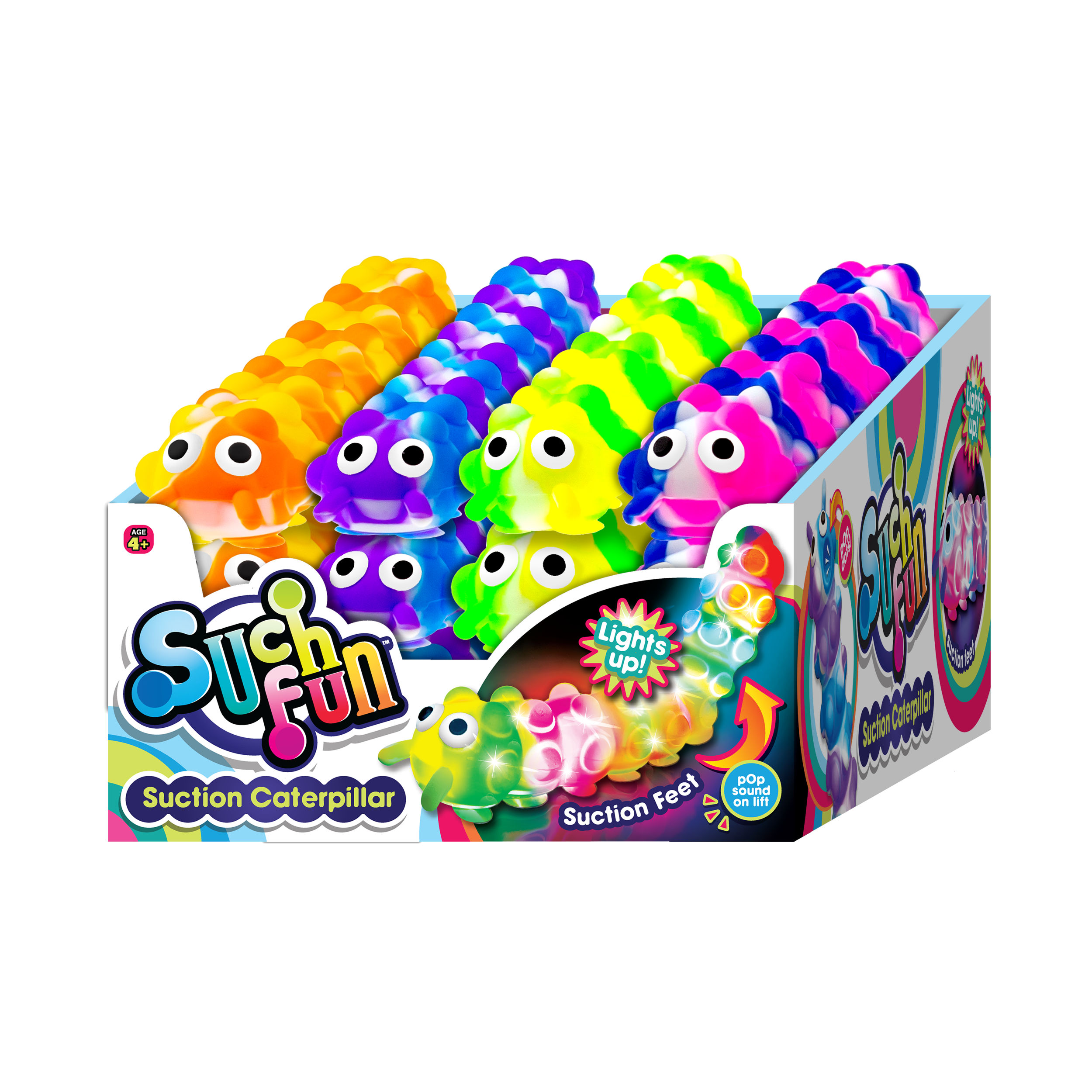 (WE CANOT GUARANTEE A SPECIFIC STYLE) IF YOU WOULD LIKE US TO CHOOSE FOR OYU WE ARE HAPPY TO DO SO. IF NOT, PLEASE VISIT US IN STORE TO PICK YOUR FAVORITE STYLE.Such Fun Suction Caterpillar features suction cup feet and lights up. Comes in 4 fun bright tie-die like styles.Specifications