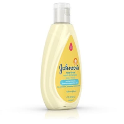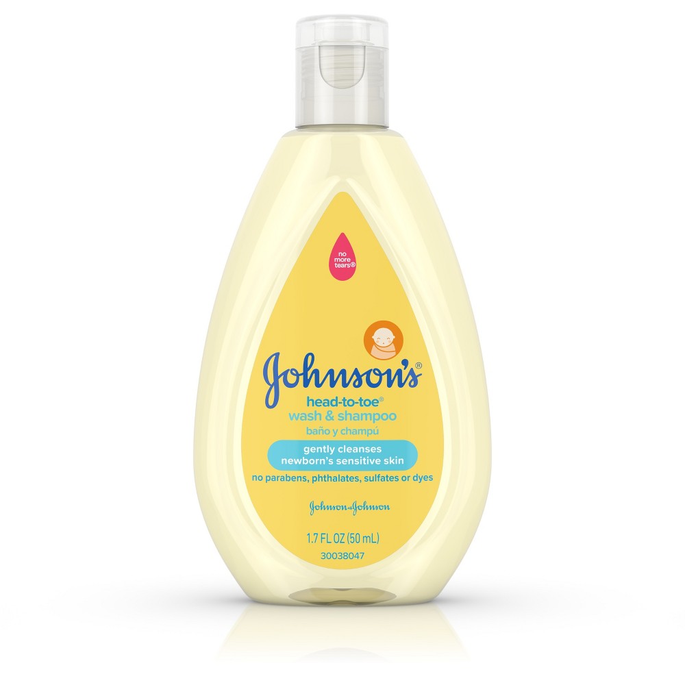 1.7-fluid ounce bottle of Johnsons baby body wash and shampoo; Gently cleanses your newborn babys sensitive skin and hair with an ultra-mild formula; Hypoallergenic and free of harsh fragrances parabens phthalates sulfates and dyes; Johnsons no more tears tear-free formula is as gentle to the eyes as pure water; Over 90% of the ingredients in this gentle baby wash & shampoo are of natural origin; Pediatrician-tested and ph-balanced to baby skin; Sulfate-free wash maintains your babys natural skin moisture barrier; To use apply the gentle wash & shampoo to your baby with warm water lather & rinse