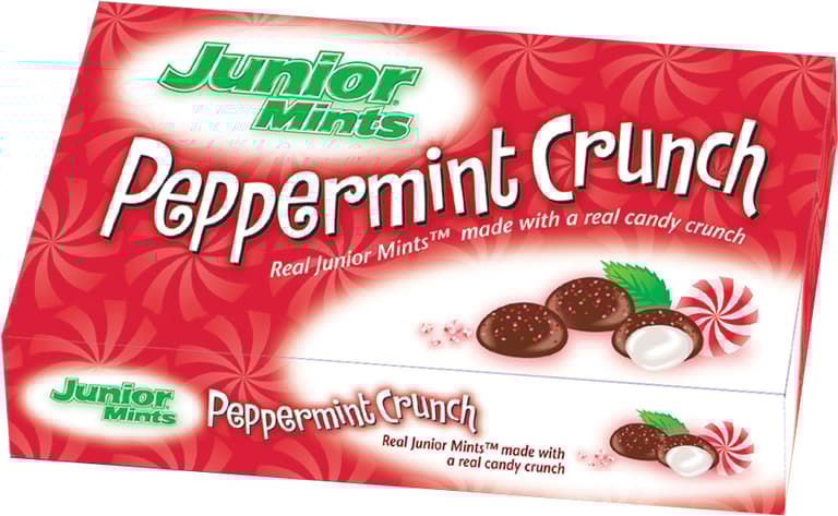Candy, Peppermint Crunch, Box 3.5 OZ Real Junior Mints made with a real candy crunch. Real Junior Mints with an added peppermint crunch! We've added some crunchy bits to our rich dark chocolate shell and original mint centers to provide a fun and festive eating experience for you this holiday season!Specifications