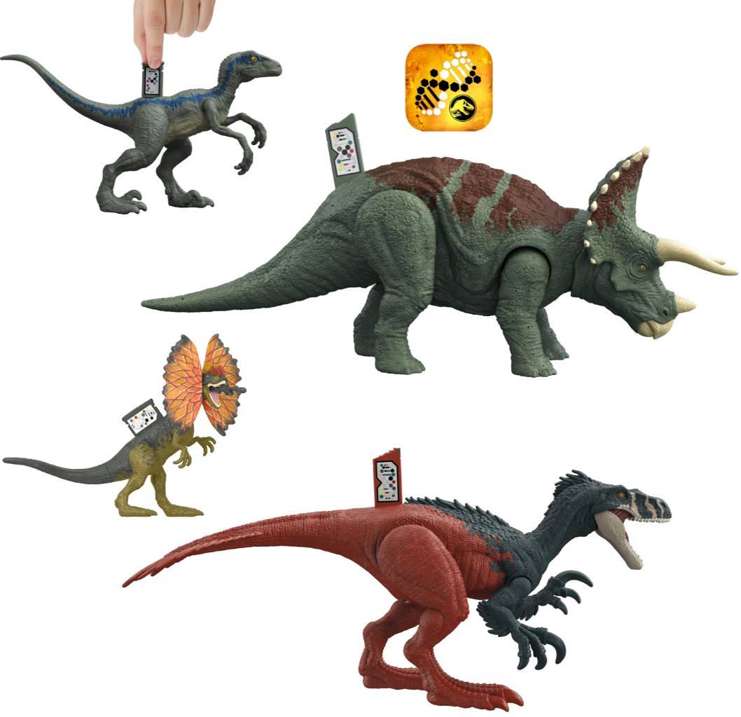Figures include herbivores and carnivores with realistic sculpting and authentic decoration at about 7 inches long and 3 inches tall. Scan the hidden Tracking Code in the free Jurassic World Play App; These dinosaurs have movable joints for pose and play battle fun