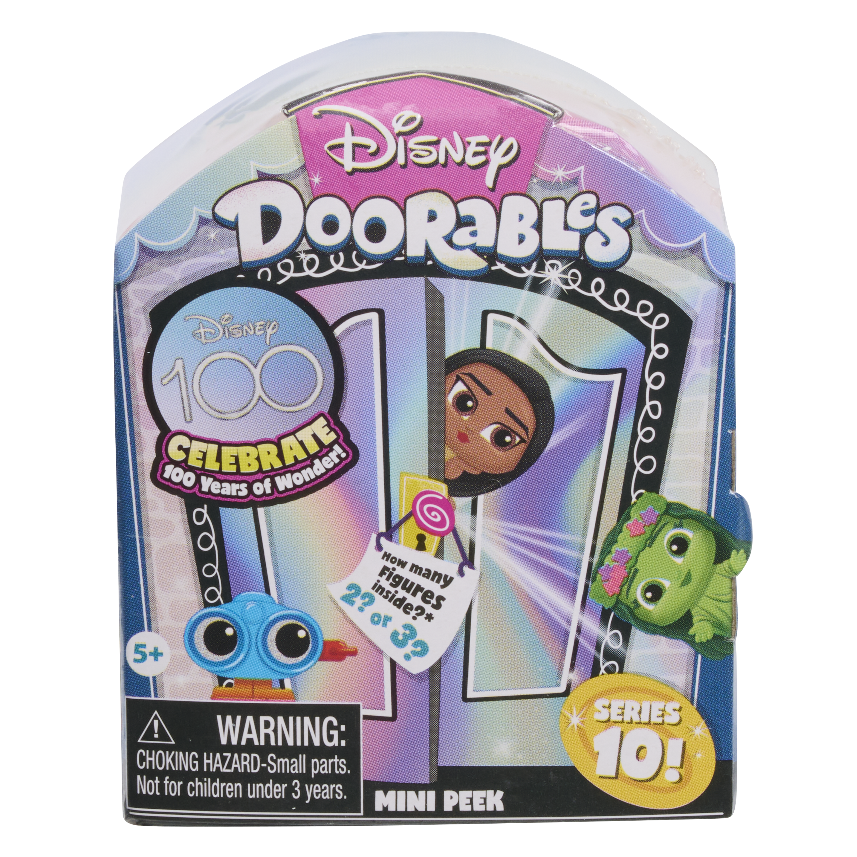 Behind every door, a surprise is in store with Disney Doorables Mini Peek. collectible figures. Open the doors to unbox 2 or 3 figures hidden inside. Series includes 50 new characters from beloved Disney and Pixar movies. Look for a variety of special figures: soulful pearlized translucent, eye-catching metallic, and unique 25th Anniversary characters from the story of Disney’s Mulan. Some will even find limited-edition versions of favorite characters. Each figure stands approximately 1.5 inches tall and features stylized detailing with sparkly glitter eyes. Recreate classic Disney tales or invent new adventures. The stories are endlessly fun and get better as additional kids toy figures & playsets are collected, displayed, and shared. A fun toy for kids ages 5 years and up.Specifications