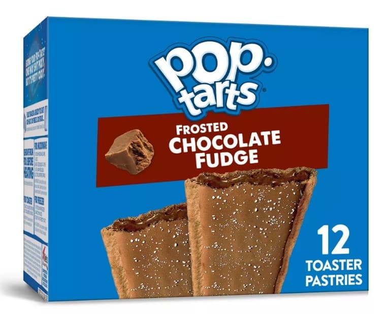 Pop-Tarts Frosted Chocolate Fudge. Aw fudge - could you be any more delicious? Chocolate frosting chocolate-flavored filling chocolate crust with little white sprinkles. These toaster pastries also make welcome additions to care packages and gift baskets a pleasant surprise friends and family will love. Just put them in your toaster for a crisp warm crust heat them in the microwave or enjoy them straight out of the foil with a glass of ice-cold milk.Specifications