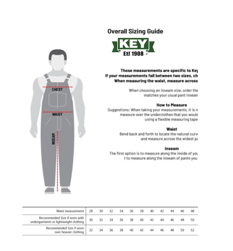 The Key Insulated Duck Bib Overall Works Hard And Wears Well. Maximize Productivity During Extreme Weather With The Rugged, Heavyweight, Protective Outer Shell. This Bib Was Made To Last With The Reinforced Pockets, Heavy-Duty Zippers And Double Knee With Cleanout. Storage Is Key With The Variety Of Pockets On The Interior And Exterior, Including Different Versions Of Utility Pockets On Each Leg. When The Job Is Done, You Will Appreciate The Convenience Of The Leg Zippers To Hip, Front Chest Zipper And Black Taffeta Lining For Easy On, Easy Off. Pair With A Matching Key Insulated Hooded Duck Jacket Or Key Insulated Duck Chore Coat.Specifications