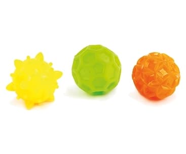 goes different directions when bounced; light up ball when bounced; textured ball for great movement