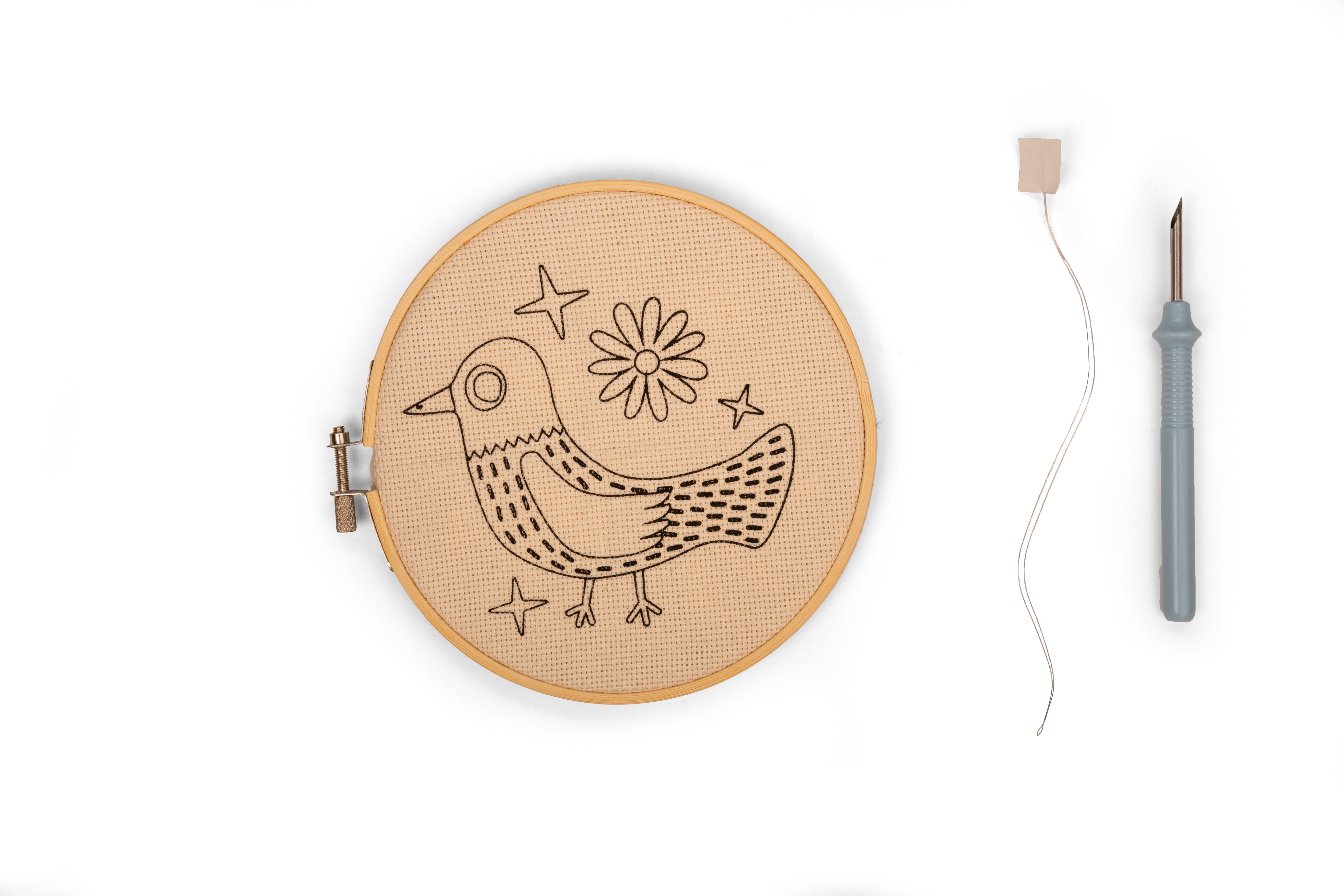 Kit comes with everything needed including: 1 adjustable bamboo hoop, 1 punch needle, 1 needle threader, 1 cotton cloth with printed template, and plenty of yarn to complete the design.; Learn the traditional handicraft of punch needle or rug hooking and create your very own miniature tapestry.