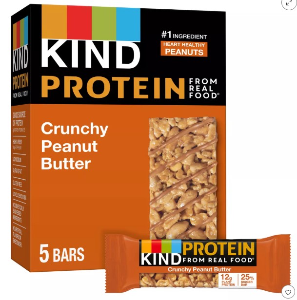 KIND PROTEIN bars are healthy, gluten free nut snacks made with premium ingredients and whole nuts so you don’t have to choose between health and taste. Each bar has 12g plant protein and is 25% bigger than an original KIND bar. Crunchy Peanut Butter protein bars lead with heart healthy peanuts as the #1 ingredient. These gluten free bars combine smooth peanut butter and crunchy peanuts for a delicious, healthy snack. These individually wrapped snacks are perfect for enjoying on-the-go, at the office or energizing you post workout. These nutrition bars are a good source of protein, have a low glycemic index, and are gluten free, kosher snacks made without genetically engineered ingredients. Contains 18g of fat per barSpecifications