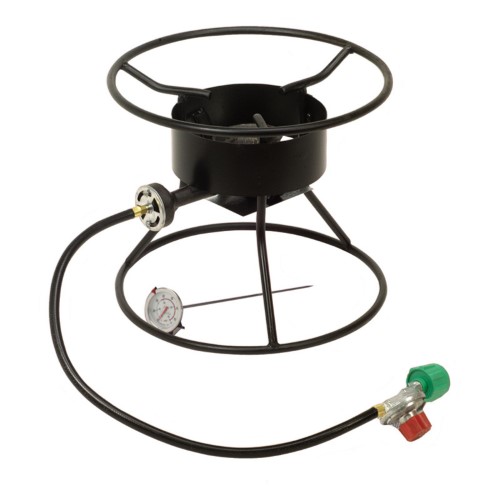 Standing 12 inches tall, this handy propane outdoor cooker blasts out 54,000 Btu's from its durable cast burner for plenty of cooking power in the great outdoors. Designed by a professional welder, this baby is sure to hold up through years of heavy outdoor use. The cooker comes with a deep fry thermometer that makes it easy to monitor temperatures for perfectly cooked meals every time. A UL listed liquid propane hose and regulator with a Type 1 connection complete the package so you're up and running right away. With no assembly required, a handy instruction/recipe booklet walks you through specific cooking procedures. The cooker works great with King Kooker's full line of pots, Dutch ovens, pans, and more.Specifications