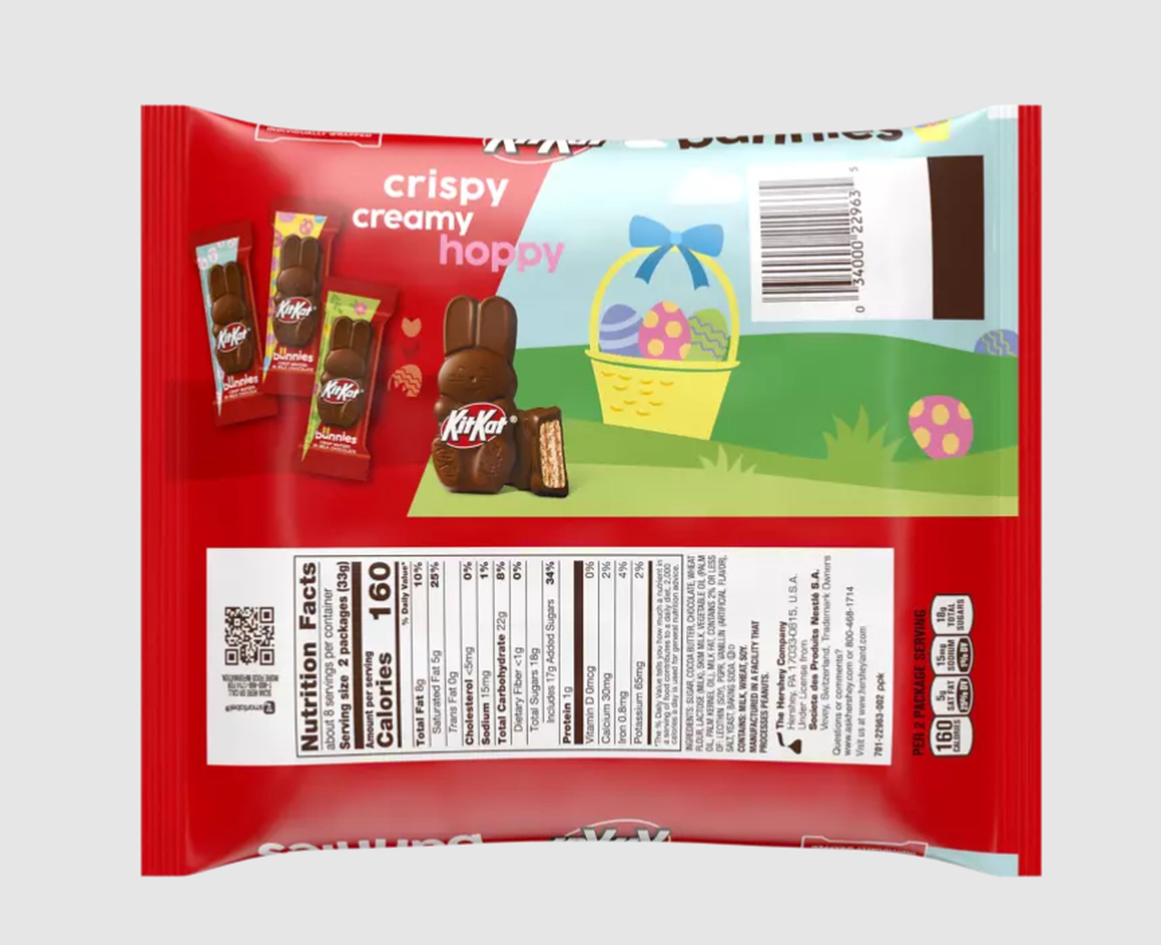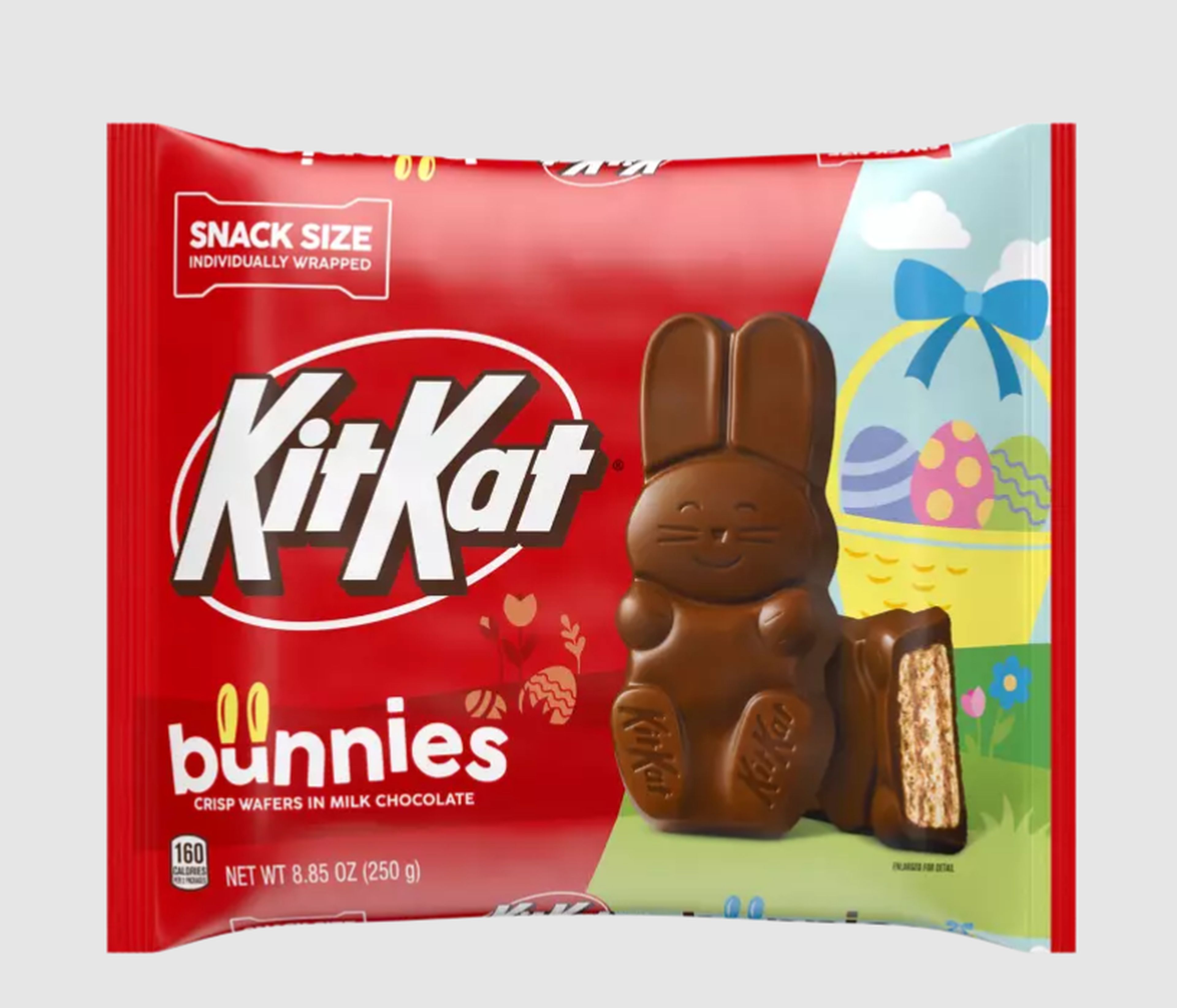 Hop into your break with Kit Kat Milk Chocolate Snack Size Bunnies! These playful, bunny-shaped treats combine crispy wafers with a smooth milk chocolate coating. Perfect for decorating Easter baskets, candy dishes or a sweet springtime snack, these bite-sized bunnies bring a little extra fun.Specifications