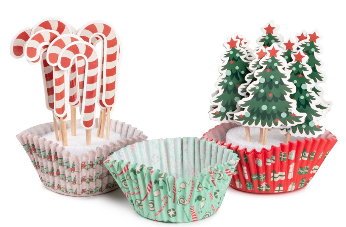 48pc Cupcake set; comes with cupcake liners, toothpick, and toppers; novelty prints