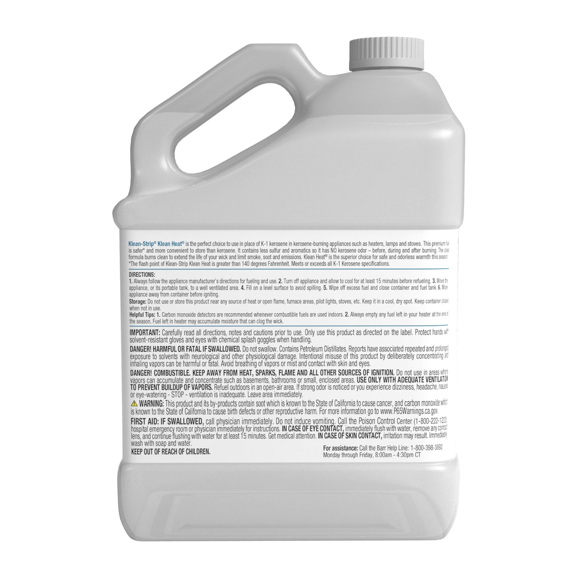Klean-Strip Klean Heat is the perfect choice to use in kerosene-burning appliances such as heaters, lamps and stoves. This premium fuel is safer and more convenient to store than kerosene. It contains less sulfur and aromatics, so it has NO kerosene odor before, during and after burning. The clear formula burns clean to extend the life of your wick and limit smoke, soot and emissions. Keep out of reach of children.Specifications