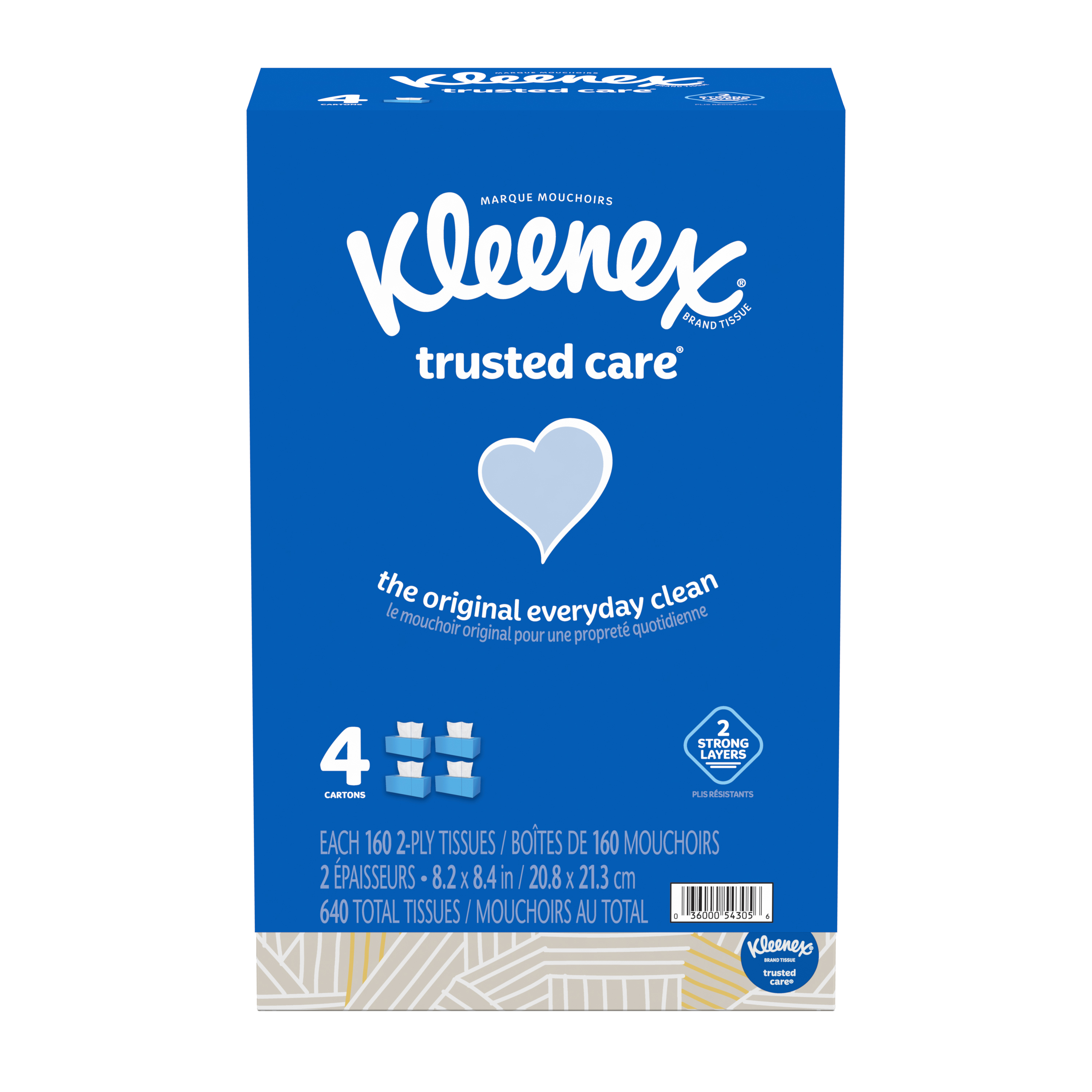 Kleenex brand facial tissues have an 80 year history of excellence and high performance; Kleenex is the world's number one facial tissue brand, trusted by more consumers than any other; Kleenex tissues provide just the right balance of softness, strength, & absorbency; Less lint; thick & absorbent tissues to lock in moisture