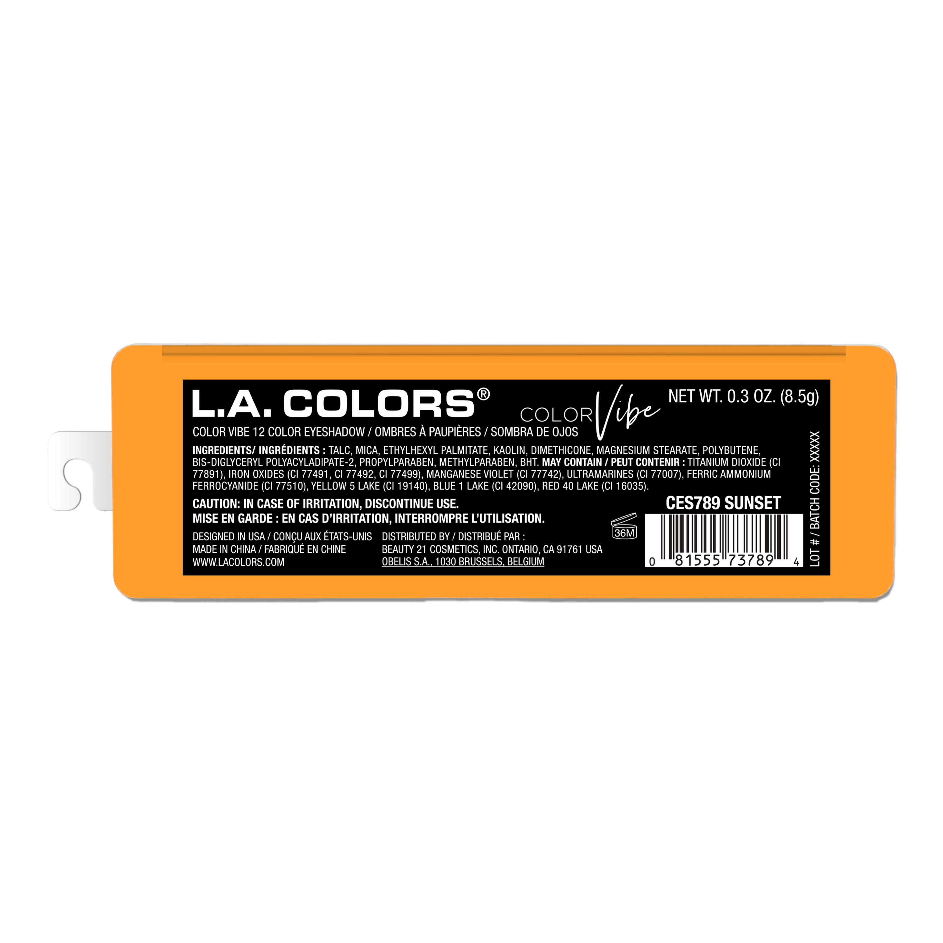 Come vibe with our newest 12-color eyeshadow palette collection, Color Vibe. Create on-trend, monochromatic looks with 5 palettes in the most popular color combinations. Sunset has warm tones. Each palette has a mix of matte and shimmer shades in a high-pigmented formula that’s easy to blend and easy on the eyes. So tell us, what’s your vibe? Mix of matte and shimmer formulas. Highly-pigmented and blendable. Cruelty-free and vegan.Specifications