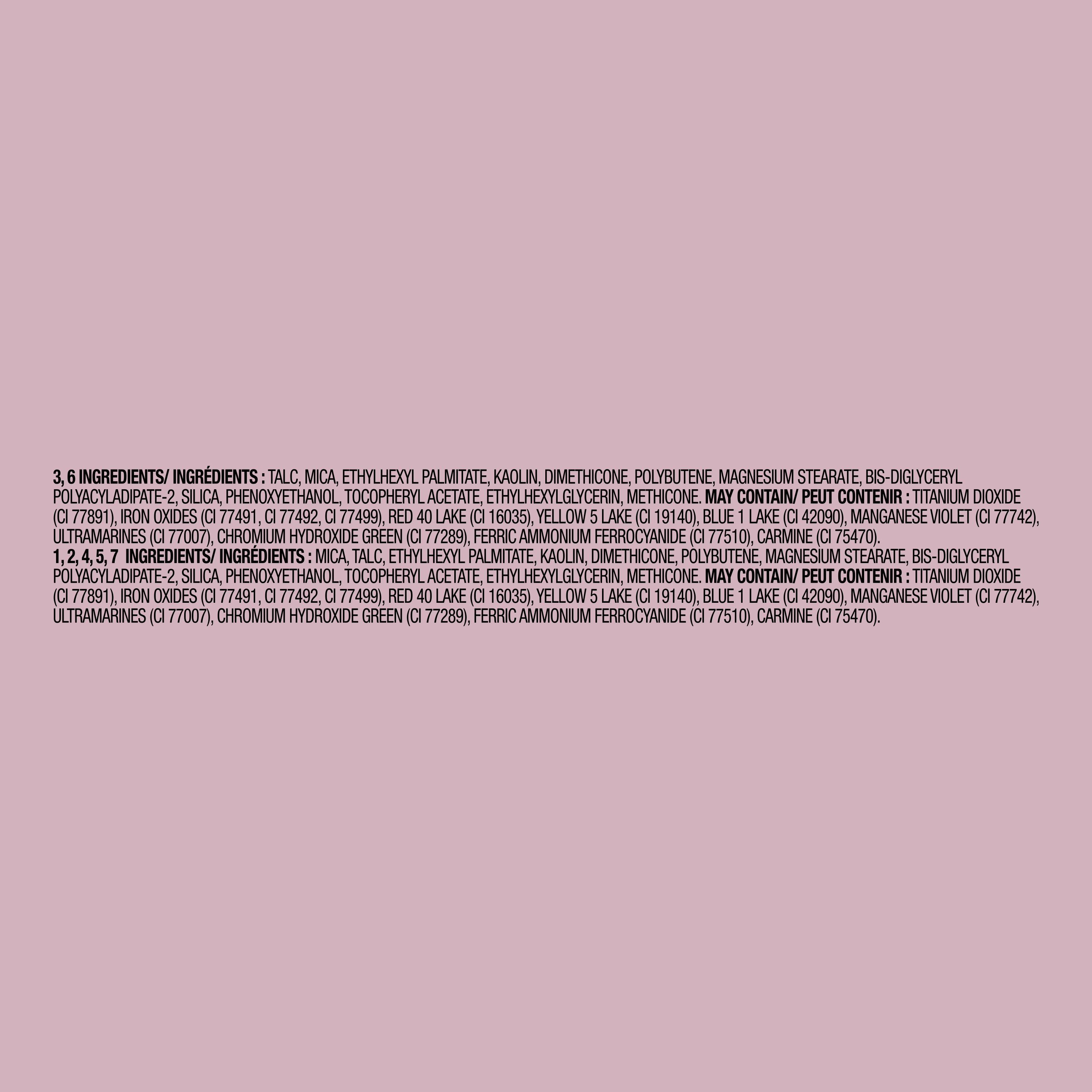 Add apop of colorto your makeup looks with a shadow thatleaves em' shook. Featuring shimmer, matte, and satin shades, indulge intotal coutureandallure. Available in 6 different cohesive palettes, each to match your mood. High color impact. Creamy soft powder. Blendable. Longwear.Specifications