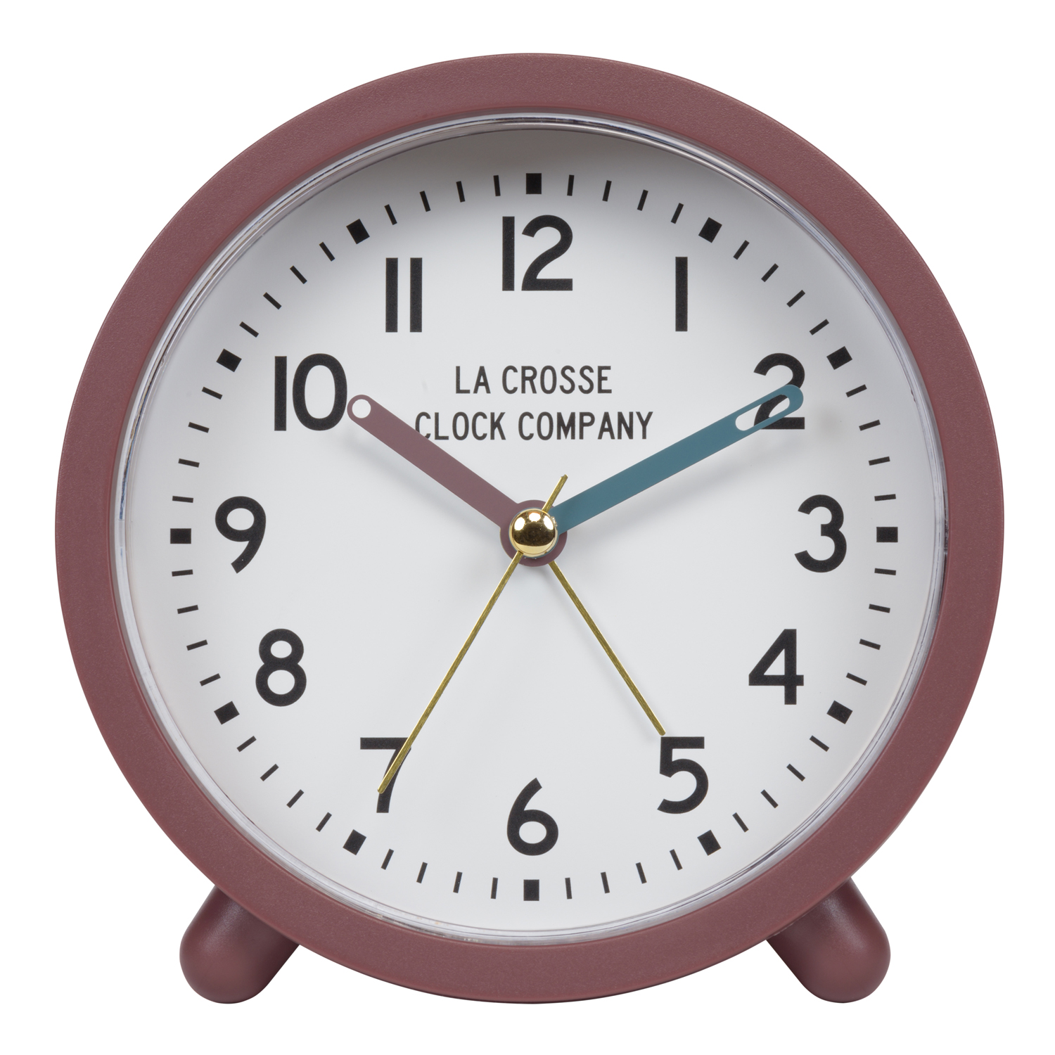 (WE CANNOT GUARANTEE A SPECIFIC COLOR) If you'd like us to choose for you, we are more than happy to do so. If not,please visit us in store to pick your favorite color. To say our 4.4-inch Analog Quartz Alarm Clock is one of the handiest timepieces we’ve developed may be an understatement. It may be compact in size, but it makes an impact with a cool, calm, and collect-and-go design. The distinctive matte case and decorative maroon hour, teal minute, and brass second hands will make you appreciate the accurate quartz movement in action. This one is not just meant to look great on any nightstand or desk. The crescendo beep alarm and on-demand backlight keep you on schedule no matter the time or place.Specifications