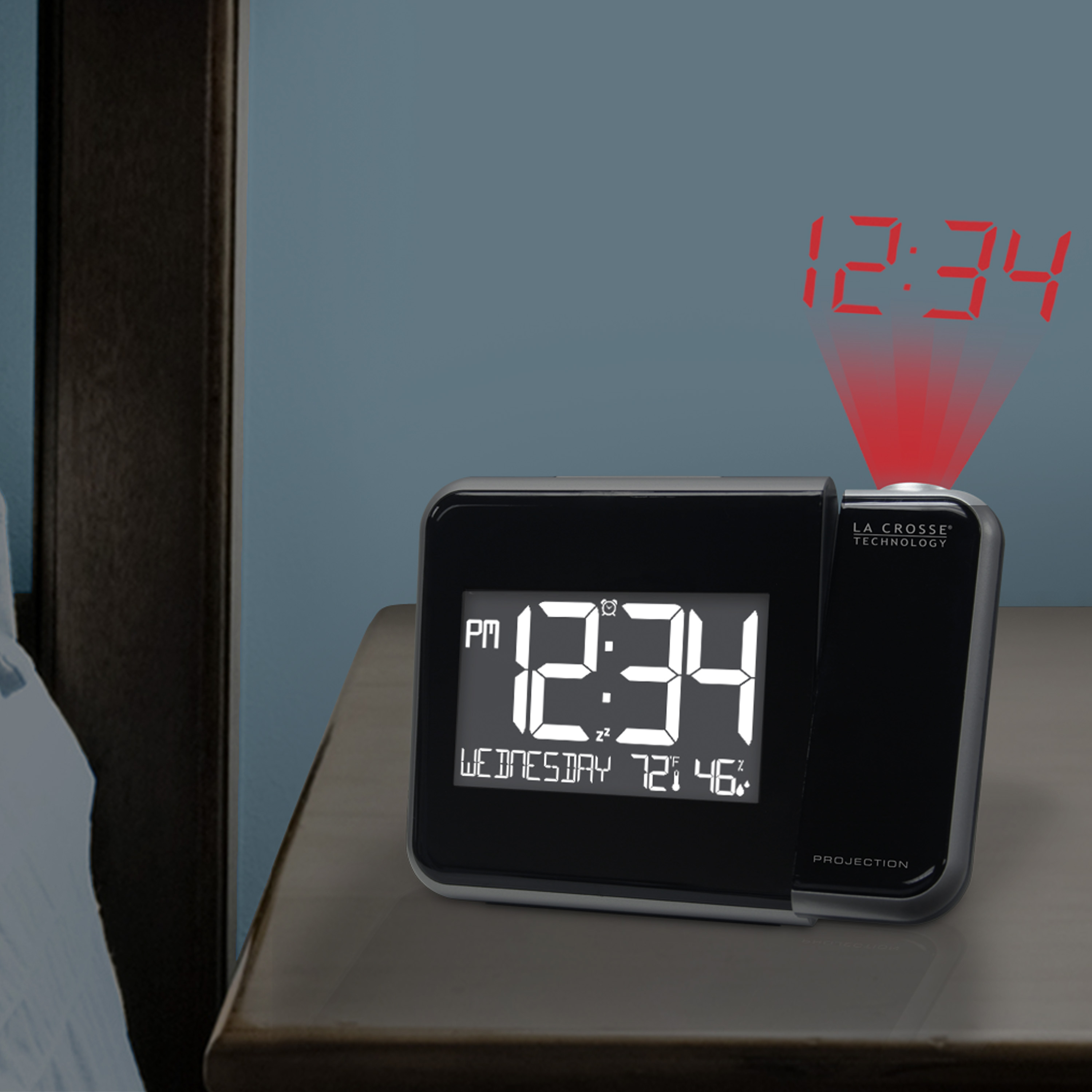 LA CROSSE TECHNOLOGY PROJECTION ALARM CLOCK WITH TEMPERATURE AND CALENDAR, BLACK