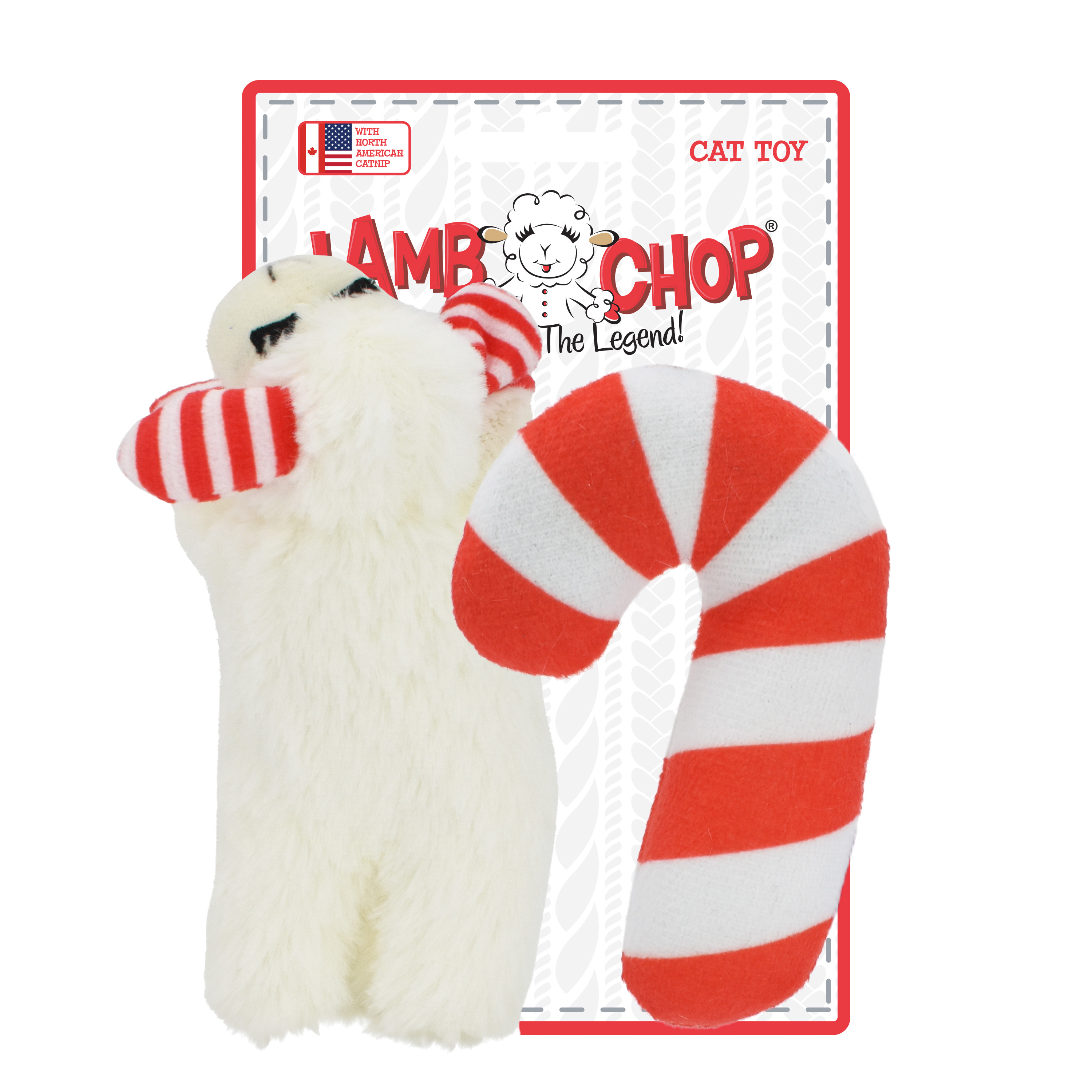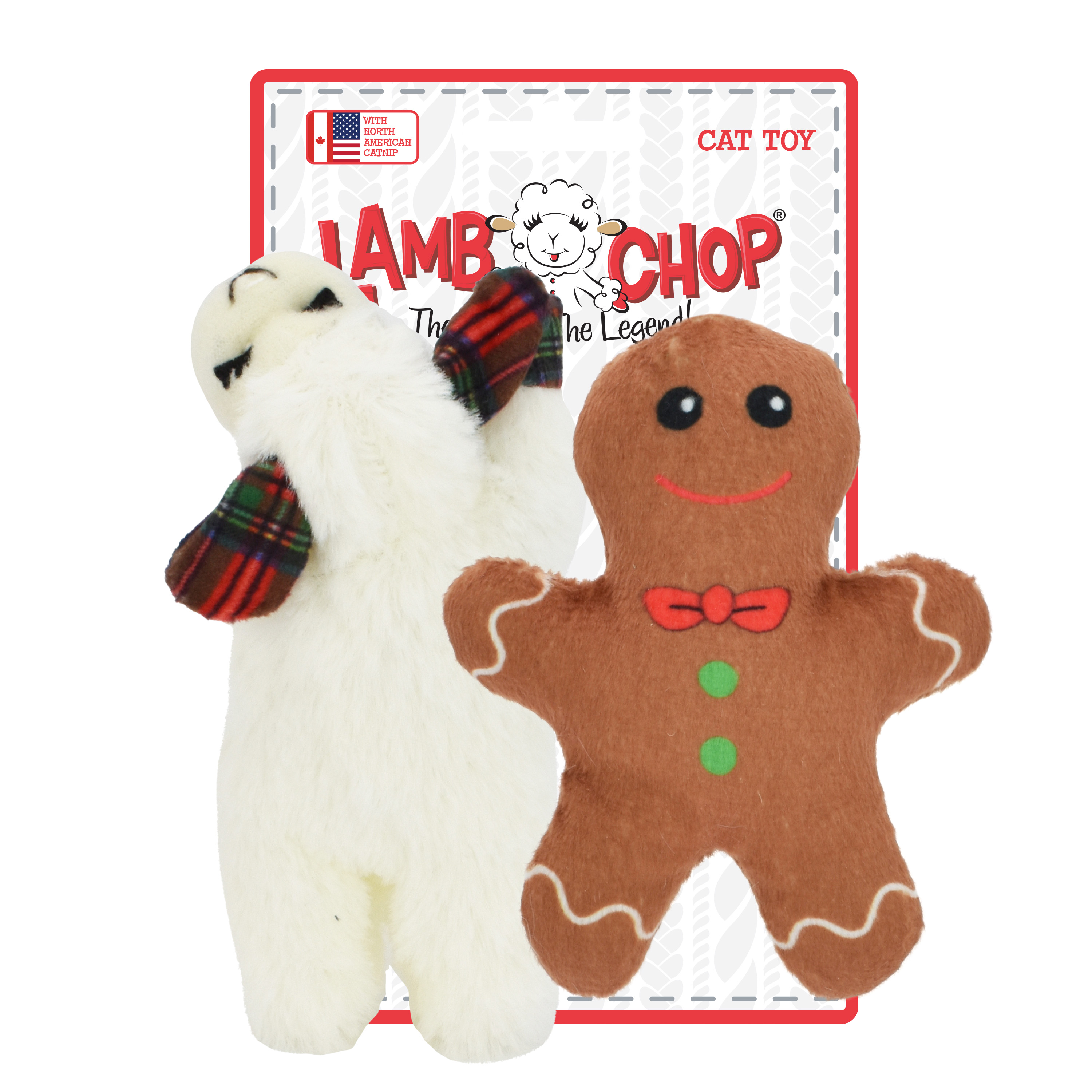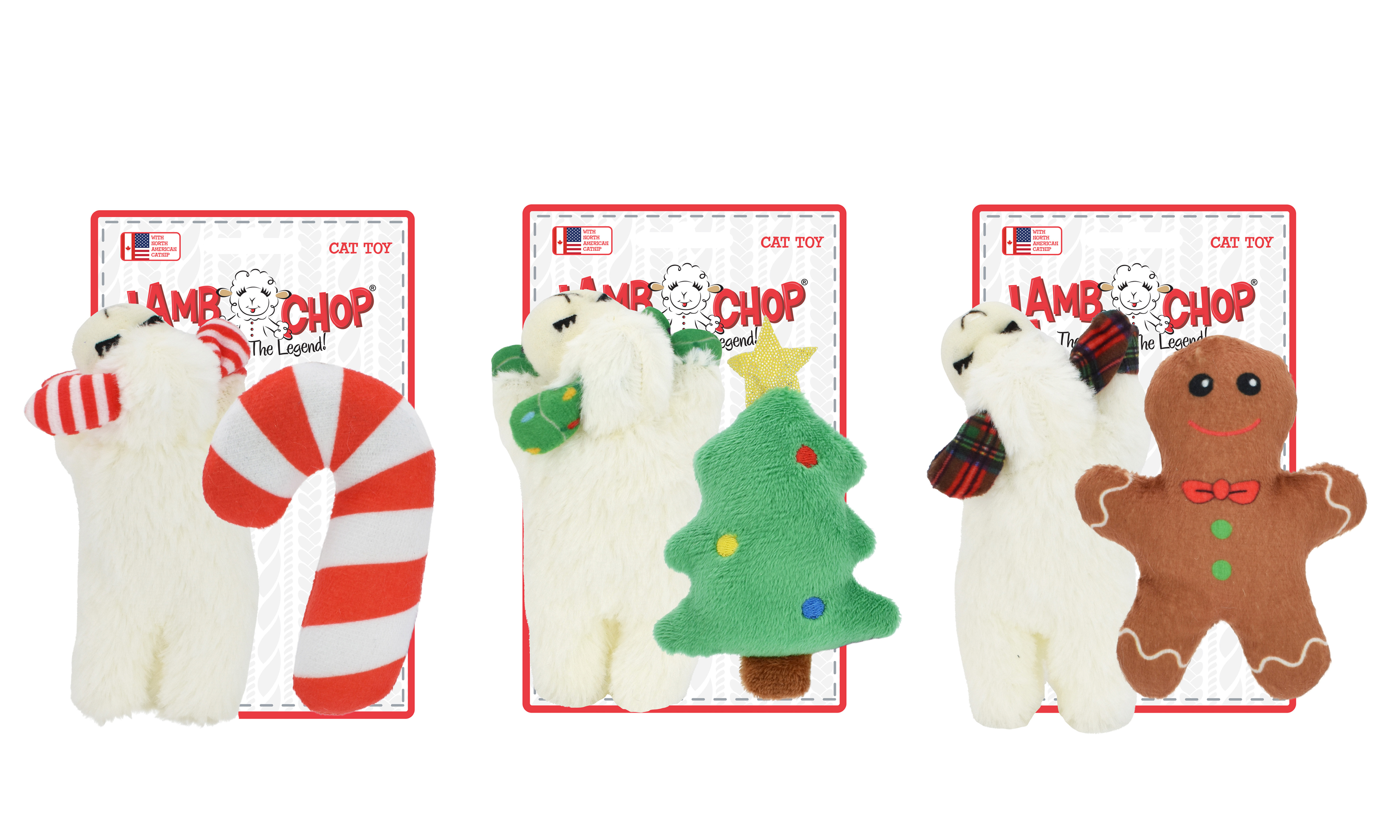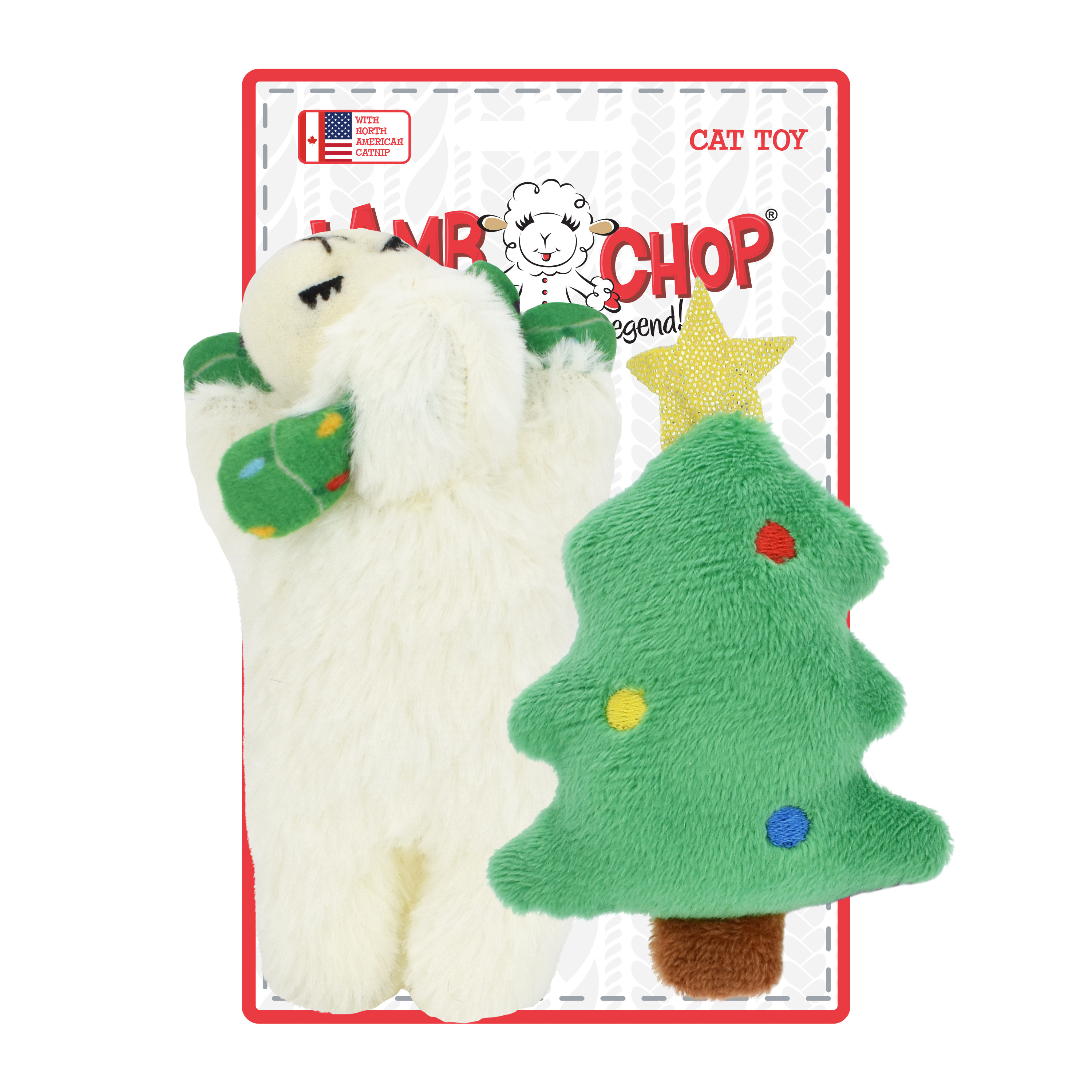 Available in three festive styles; Best of all: they contain catnip and crinkle for added fun; Pounce, chase, and swat with our Lamb Chop Holiday 2-packs