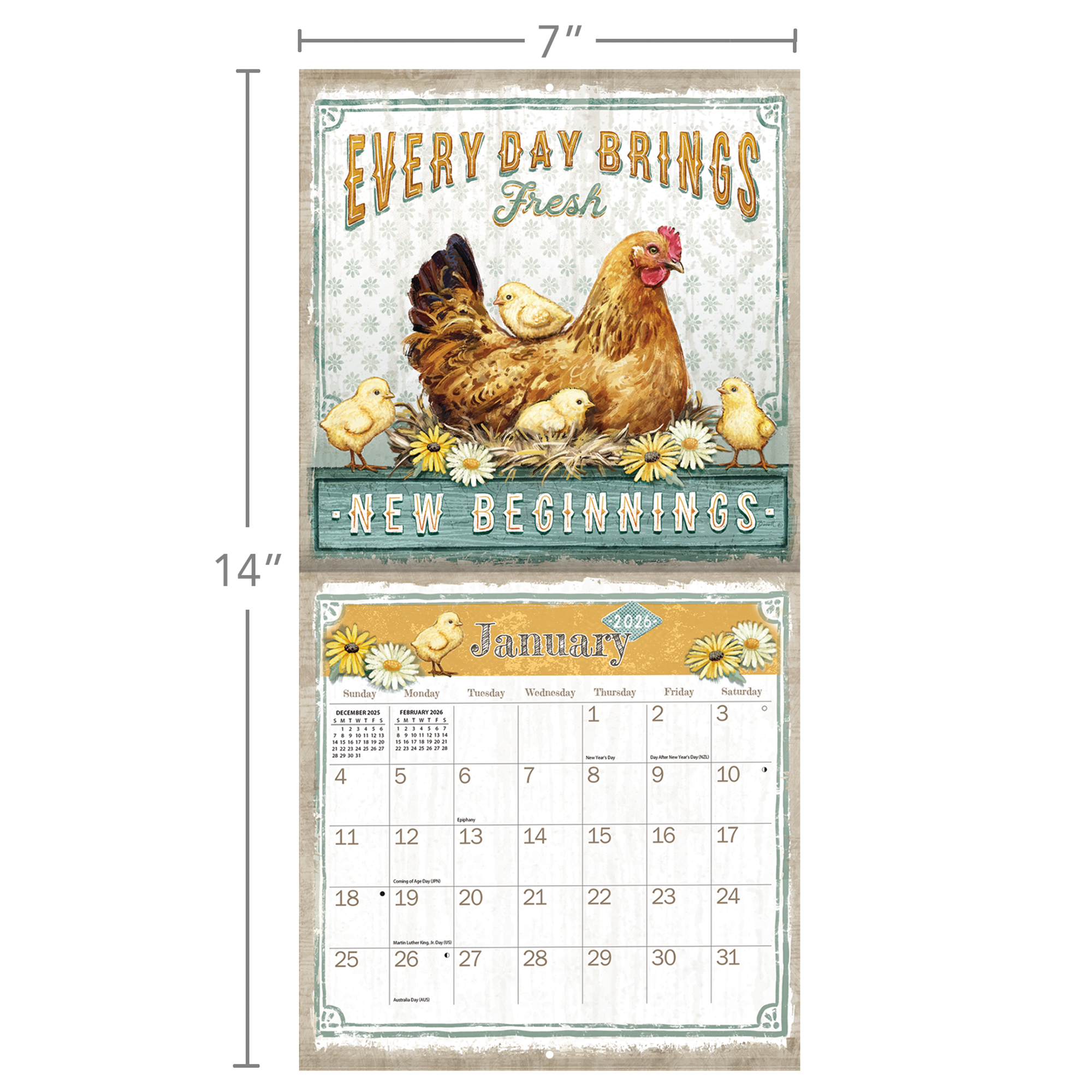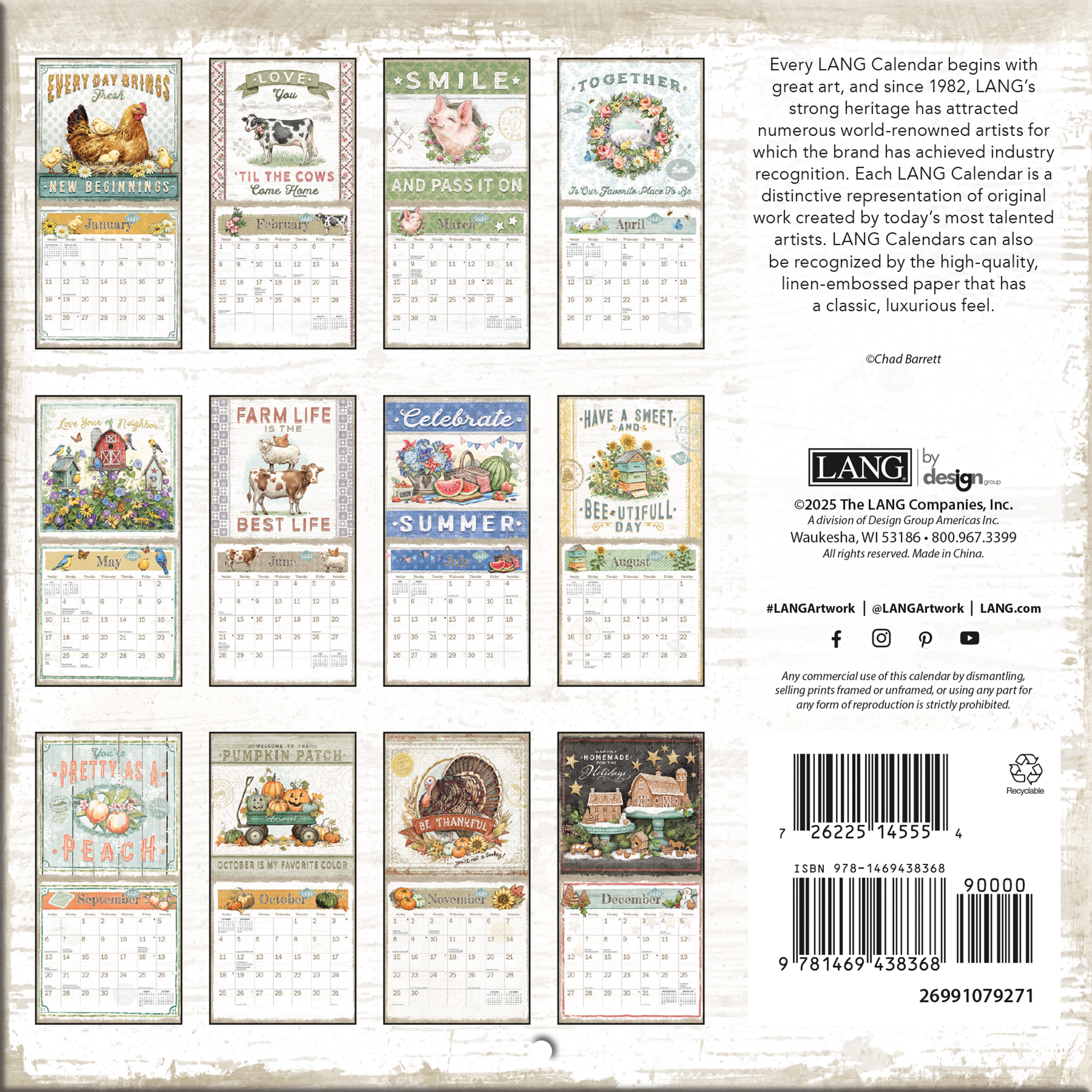 The Farmhouse 2026 Mini Wall Calendar features stunning monthly artwork by Chad Barrett of everyday life on the family farm. LANG Mini Wall Calendars are made with elegant linen embossed paper stock in a space-efficient format.Specifications