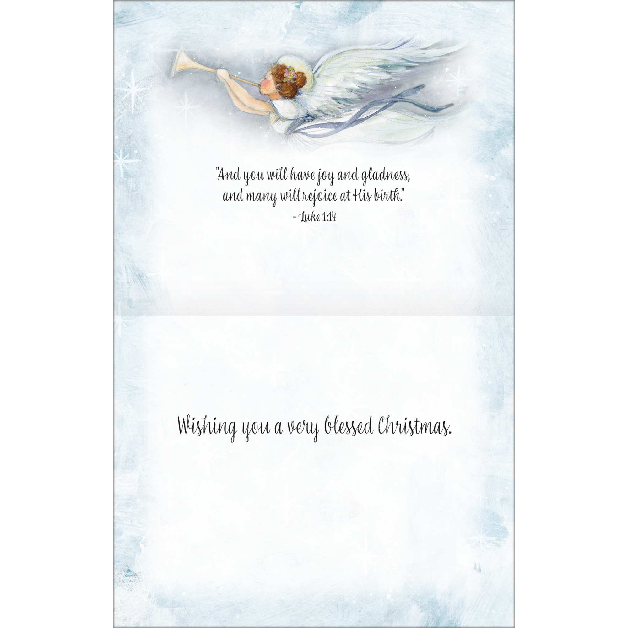 18 cards and 19 envelopes; Card: 6.875"w x 5.375"hBox: 7.75"w x 6"h x 1.6"dInside text: "And you will have joy and gladness, and many will rejoice at His birth." - Luke 1:14Wishing you a very blessed Christmas.; Full-color artwork inside and out; Full-color, sturdy keepsake box; Fully designed envelopes; Glitter embellishment