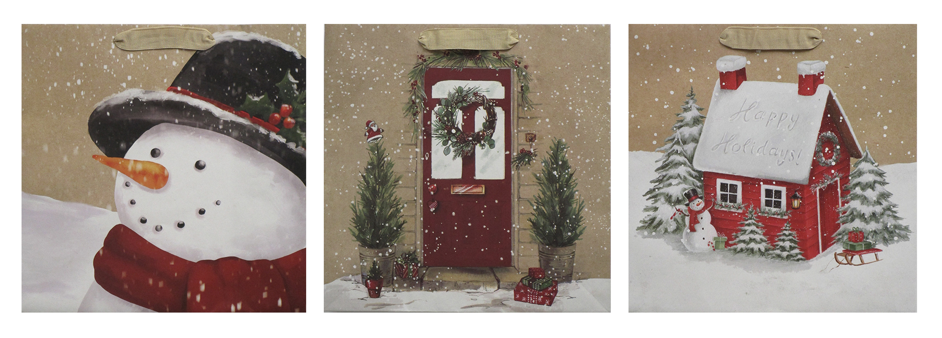 3 ASSORTED KRAFT DESIGNS: 12"H x 4.5"W x 12"LSpecifications
