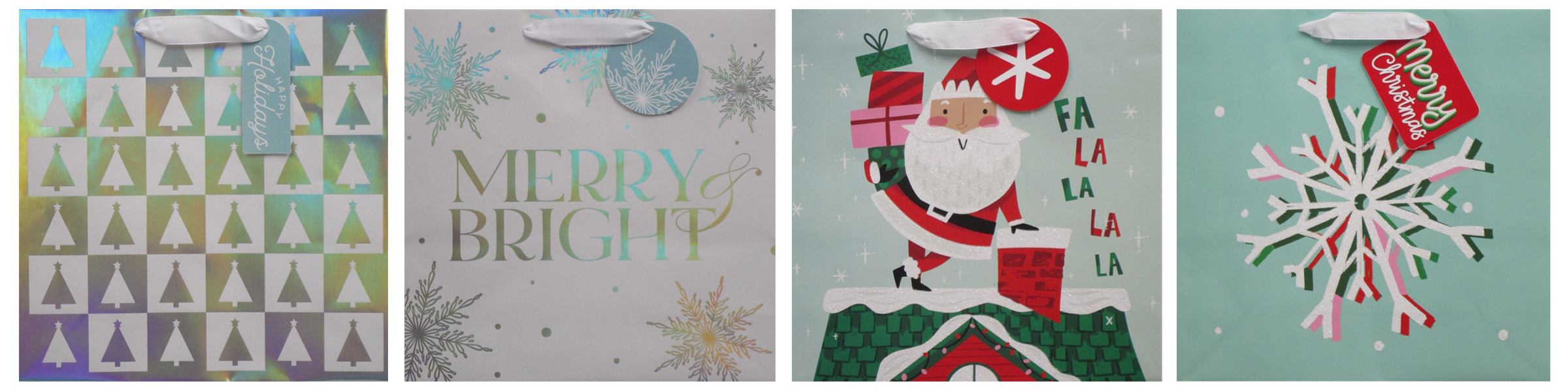 4 ASSORTED HOT STAMP OR GLITTER DESIGNS: 12"L X 4.5"W X 12"H