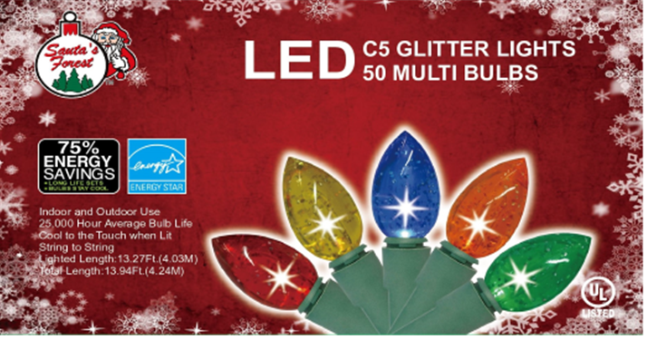 LED C5 GLITTER LIGHTS 50 MULTI BULBSSpecifications
