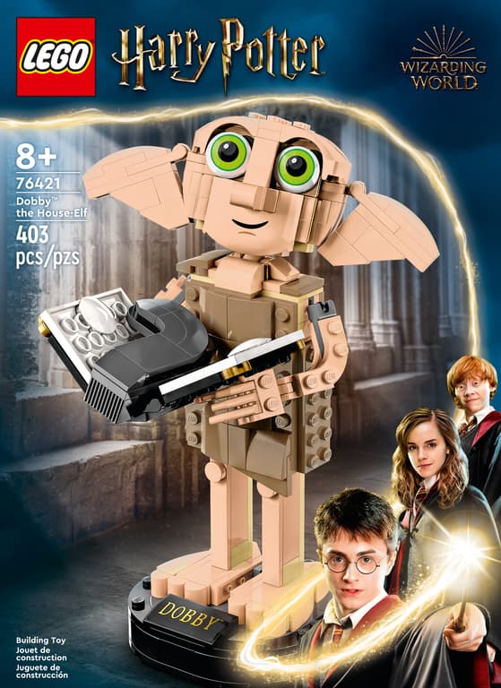 Delight Harry Potter fans with the first-ever LEGO brick model of Dobby the House-Elf. The instantly recognizable brick-built figure has a posable head for different looks, and posable arms and fingers so Dobby can hold the included iconic accessories. There is a detailed buildable model of Harry Potter’s sock with Tom Riddle’s diary that Harry used to set Dobby free and Aunt Petunia’s floating’ pudding cake to inspire memories of classic scenes. Collectible build-and-display model A magical gift idea for kids aged 8 and up and any collector of Harry Potter memorabilia, this buildable Dobby the House-Elf display model stands over 7.5 in. (19 cm) tall. Place the Dobby figure on the buildable stand with a nameplate to complete a display piece that’s sure to catch the eye of every passerby. A new way to build Give your youngster an easy and intuitive building adventure with the LEGO Builder app. Here they can zoom in and rotate models in 3D, save sets and track their progress.Specifications