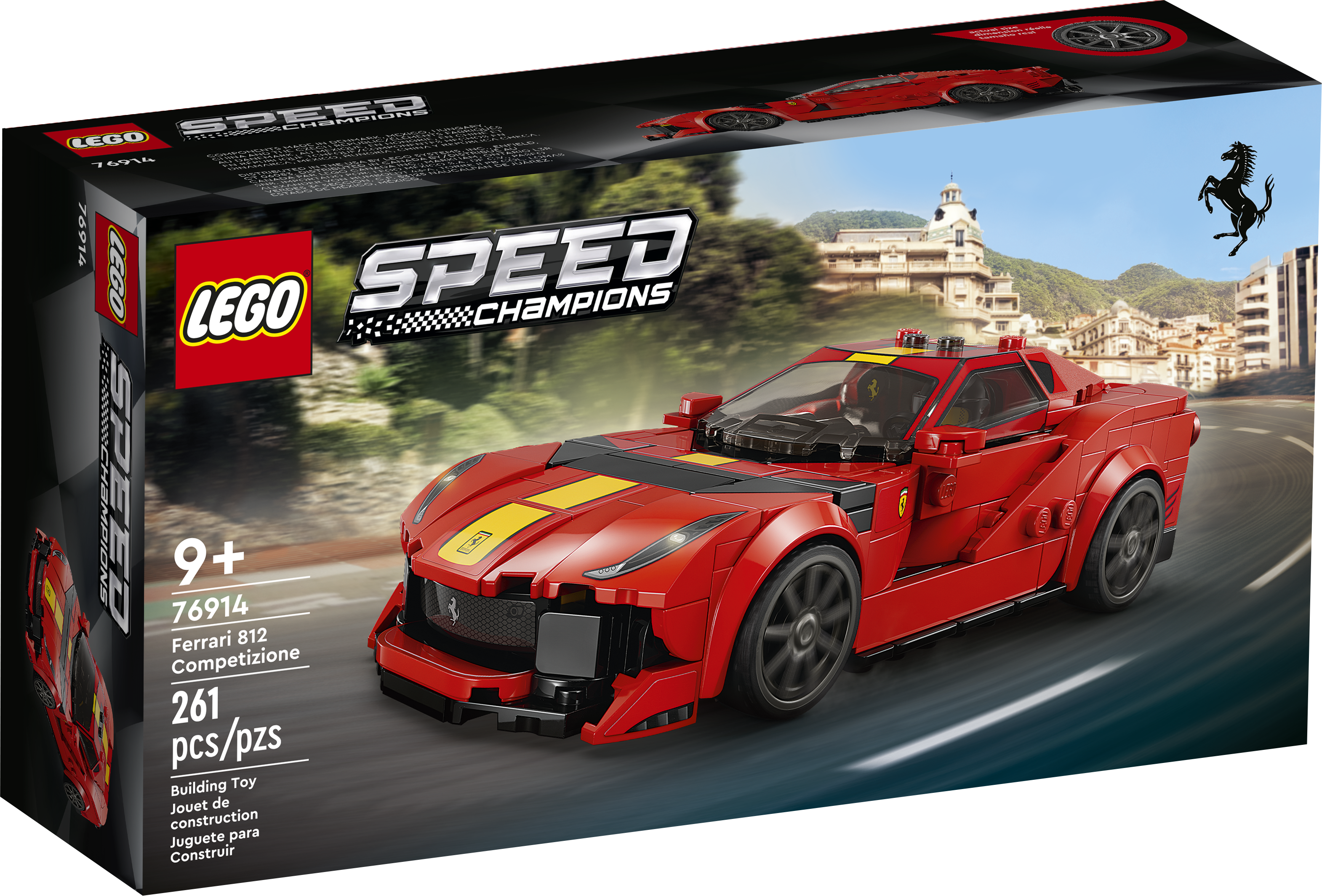 This LEGO Speed Champions Ferrari 812 Competizione (76914) building kit captures all the power and performance of the real-life limited-edition sports car. Kids aged 9 and up and car fans can for the first time ever collect, build and display this cool model. Build your own Ferrari This red Ferrari car toy proudly includes many authentic details: the yellow stripe running across the whole car, black blade on the hood, raised rear wing, prominent vortex generators, distinctive headlights and taillights and exhaust pipes. The set also comes with a race car driver minifigure to place behind the wheel and role-play thrilling action. A fun digital experience for LEGO fans Let the LEGO Builder app guide you and your child on an easy and intuitive building adventure. Zoom in and rotate models in 3D, save sets and track your progress.Specifications