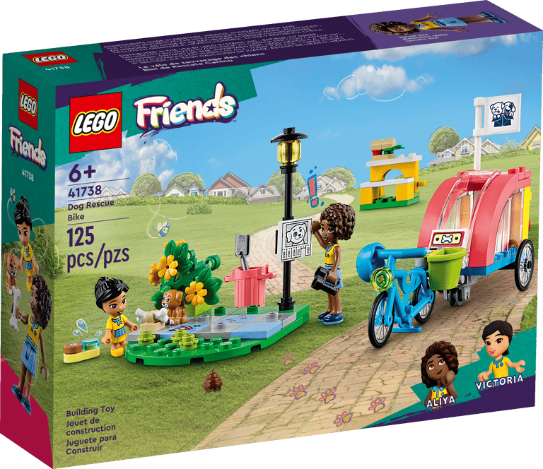 Pet-loving kids aged 6 and up can enjoy endless role-play adventures with this LEGO Friends Dog Rescue Bike (41738) building toy set. They can search Heartlake City with scout leader Aliya and younger friend Victoria to find the missing pup. Kids will love the dog poop and paw mark clues! This cool toy set includes a dog rescue bike with a removable trailer that opens from the front and the back. There is also a small park scene with a bench and a bush that lifts to reveal the lost puppy, plus accessories to help kids find and care for the pooch. A new way of building Get ready for an easy and intuitive building adventure with the LEGO Builder app. Here kids can zoom in and rotate models in 3D, save sets and track progress. Welcome to the next generation of Heartlake City Kids make friends and discover exciting locations in the LEGO Friends universe, where they can enjoy creative play and act out real-life adventures.Specifications