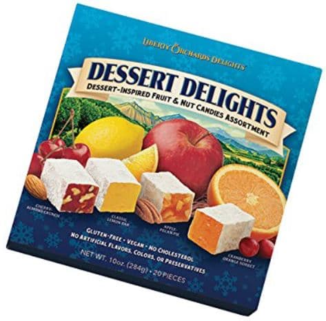 Four decadent flavors to savor! Our latest assortment of Delights includes four tempting flavors inspired by classic fruit desserts...Cherry-Almond Crunch, Classic Lemon Bar, Cranberry-Orange Sorbet, and Apple-Pecan Pie. Beautifully boxed for giving or sharing.Specifications