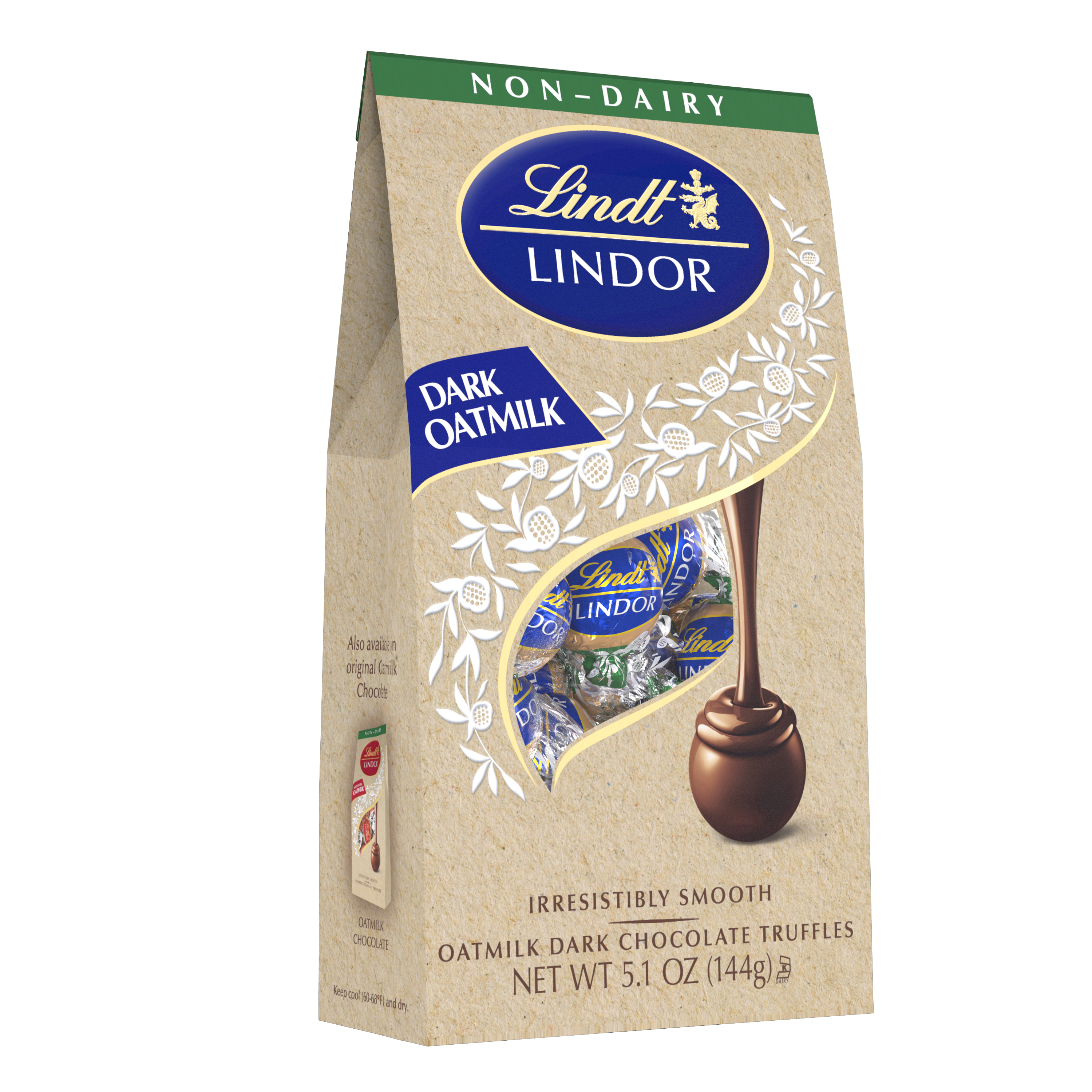 Lindt LINDOR OatMilk Dark Chocolate Truffles are here! These non dairy chocolate truffles are similar to the iconic Lindt LINDOR Dark Chocolate Truffles we all know and love but crafted with oat milk. Using plant based milk, these Lindt LINDOR truffles give you the same smooth, melting chocolate experience in a finely crafted premium oatmilk chocolate shell. These chocolate candy truffles are the perfect chocolate indulgence for those who do not consume dairy products but still crave a premium chocolate experience. Each plant based, non dairy chocolate truffle is made with premium ingredients, including the finest cocoa and gluten free oats. These individually wrapped Lindt LINDOR truffles are the perfect size to enjoy anytime, anywhere. Lindt chocolate embodies the passion and expert craftsmanship of Lindt Master Chocolatiers for a rewarding chocolate experience.Specifications