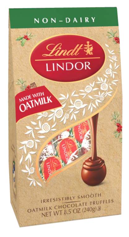 LINDT LINDOR OATMILK MILK CHOCOLATE TRUFFLES ARE HERE. THESE NON DAIRY CHOCOLATE TRUFFLES ARE SIMILAR TO THE ICONICMILK CHOCOLATE TRUFFLES WE ALL KNOW AND LOVE BUT CRAFTED WITH OATMILK USING PLANT BASED MILK. GET THE SAME SMOOTH MELTING CHOCOLATE EXPERIENCE IN A FINELY CRAFTED PREMIUM OATMILK CHOCOLATE SHELL.Specifications