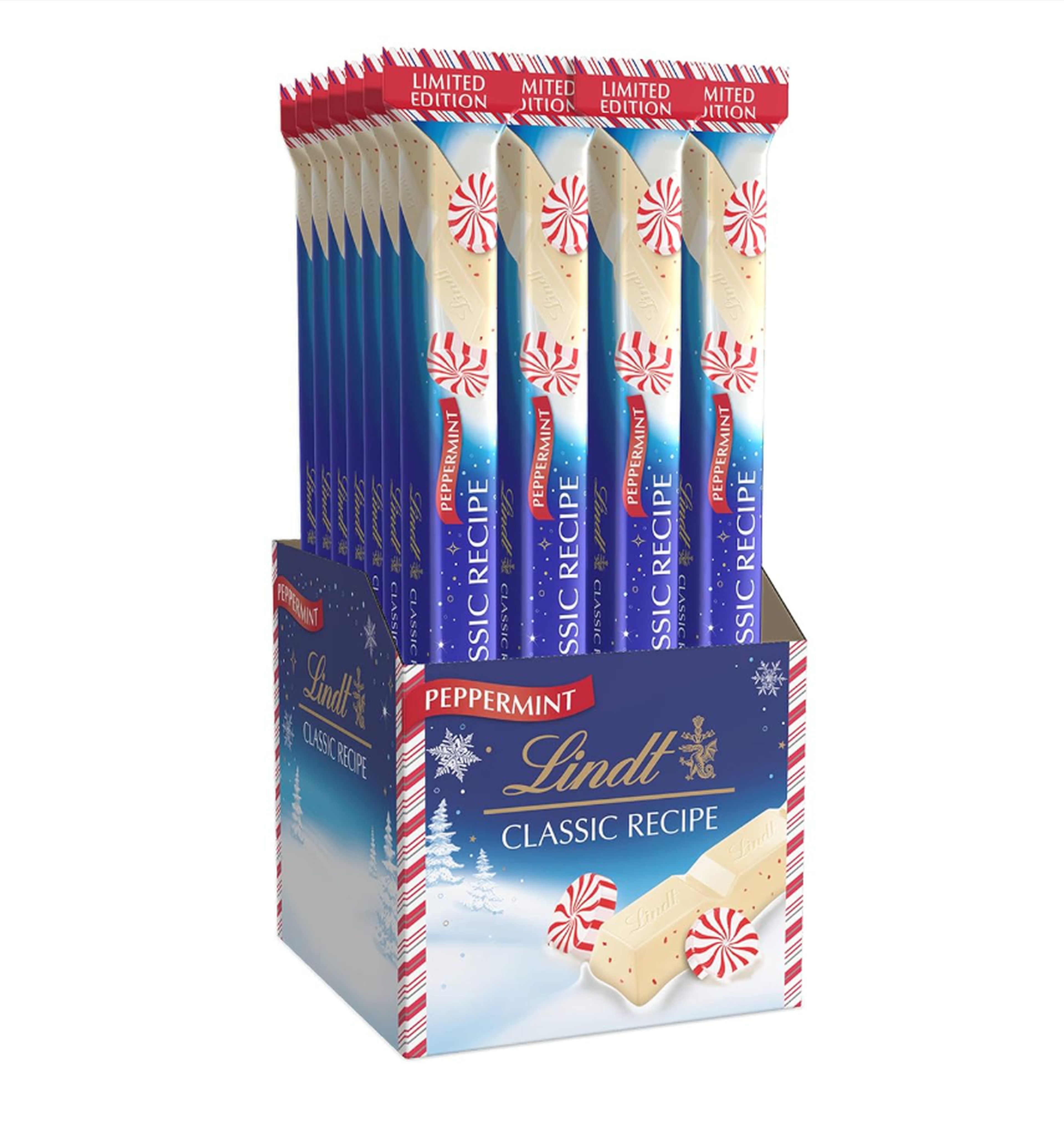 LINDT PEPPERMINT STICKS ARE MADE WITH LINDTS CLASSIC RECIPE OF PREMIUM WHITE CHOCOLATE AND SPRINKLED WITH PEPPERMINT PIECES.THESE PERFECT FOR HOLIDAY GIFT GIVING OR ENJOYING ON YOUR OWN.Specifications