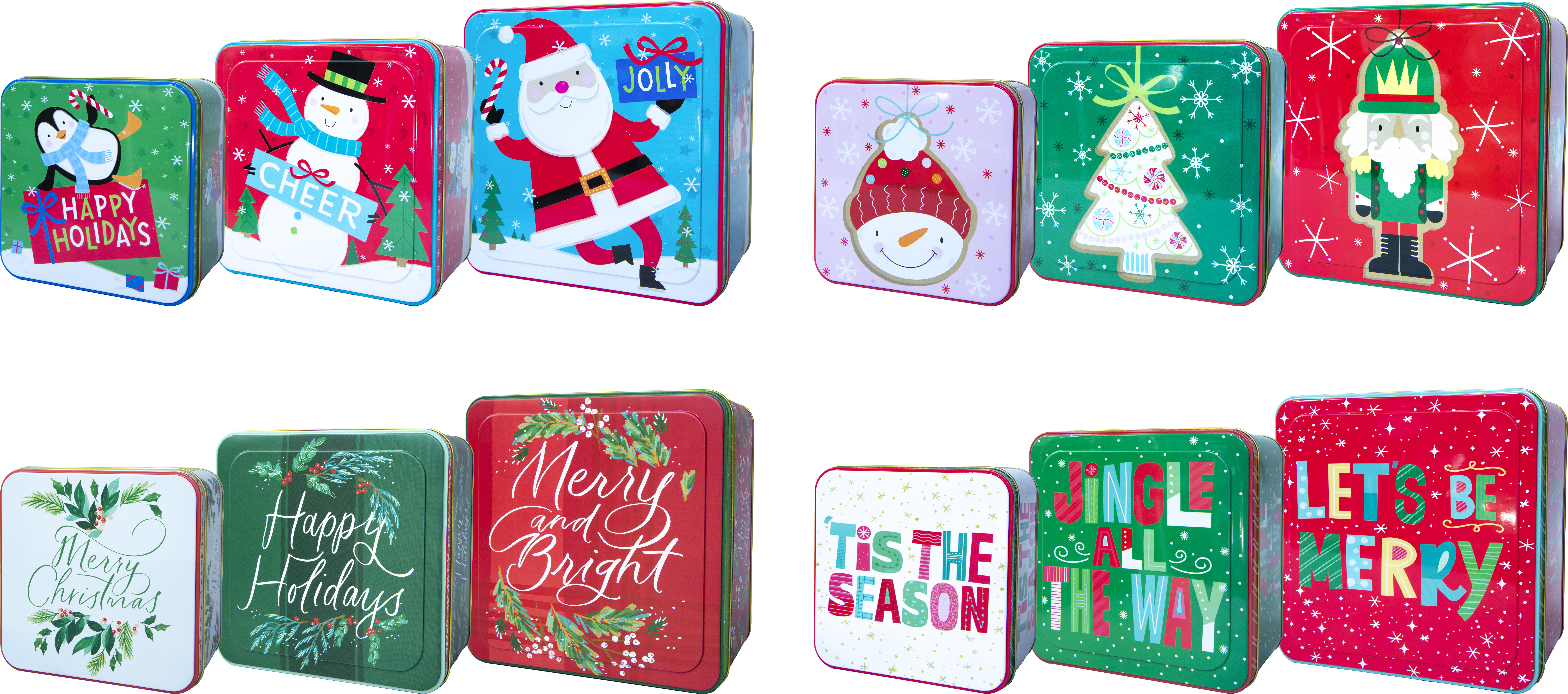 COLOR NOT GUARANTEED FOR ONLINE ORDERSThese cute square tins featuring holiday designs are made for prepare your homeade cookies or other baked treats as pretty little gift packages. Everyone loves fresh cookies, and these fun boxes will sure add to a delicious gift!Specifications