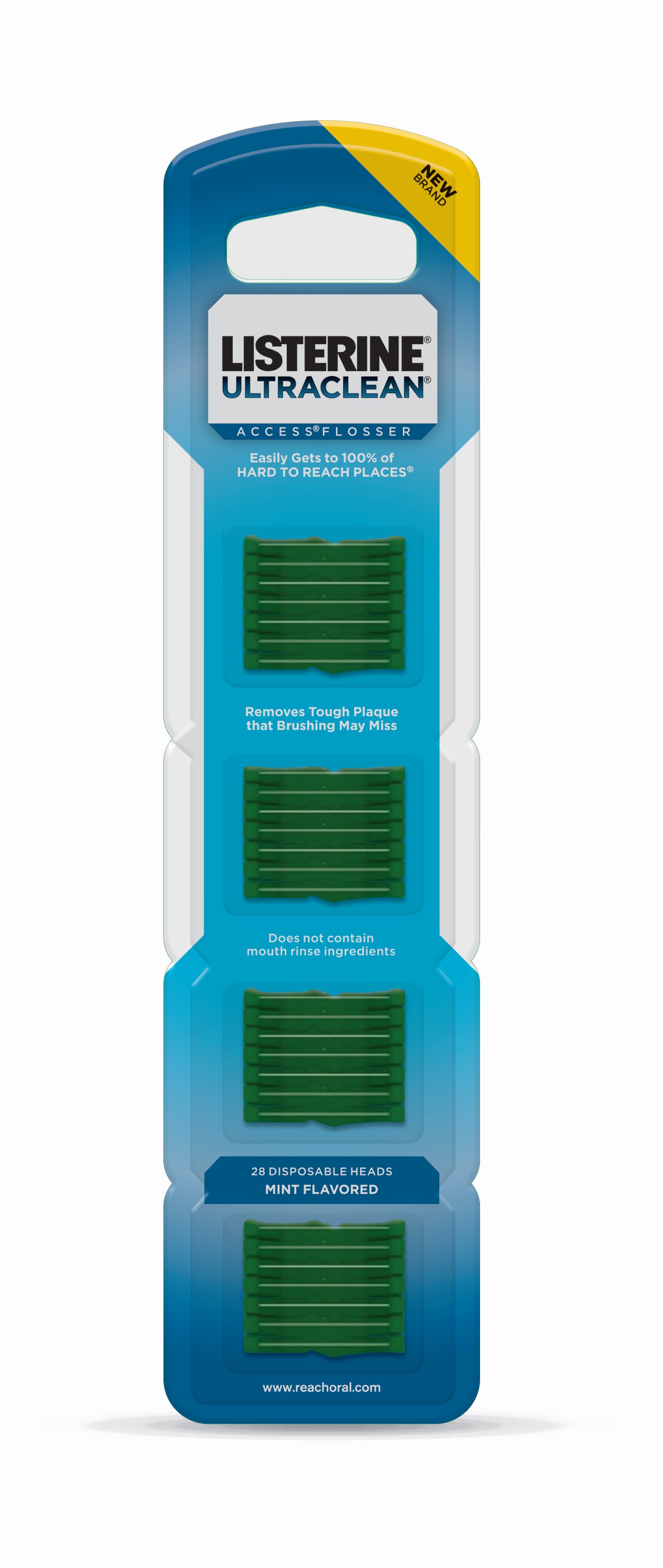 Easily reach between your teeth; Flossing removes plaque on teeth; Listerine Ultraclean Access Flosser Refill Heads; Mint flavored floss heads features high-tenacity yarn to withstand breakage