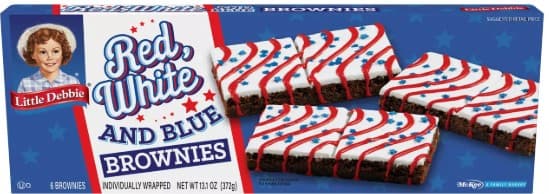 The perfect brownie for satisfying a summertime chocolate craving, Little Debbie Red, White and Blue Iced Brownies are ideal for anytime snacking! Soft and chewy, fudgey brownies are topped with white fudge icing, decorated with a patriotic red stripe and then sprinkled with blue star candies. They are individually wrapped, too, so taking to the beach, on a road trip or snacking by the pool is easier than ever to enjoy. Grab a box today!Specifications