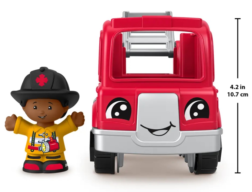 Toddlers can roll into fun rescue stories with the Little People Firetruck from Fisher-Price. Styled in a familiar theme from the grownup world and sized just right for small hands to grasp and roll around, this toy fire engine and figure set lets preschool kids use their imaginations to create stories as they play. Look for additional Little People vehicle and figure sets for more toddler-friendly vehicle play! (Additional vehicles sold separately and subject to availability.) ?Specifications