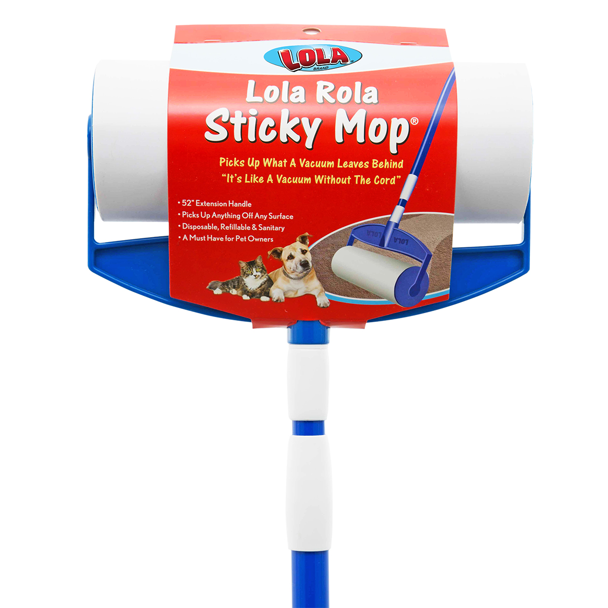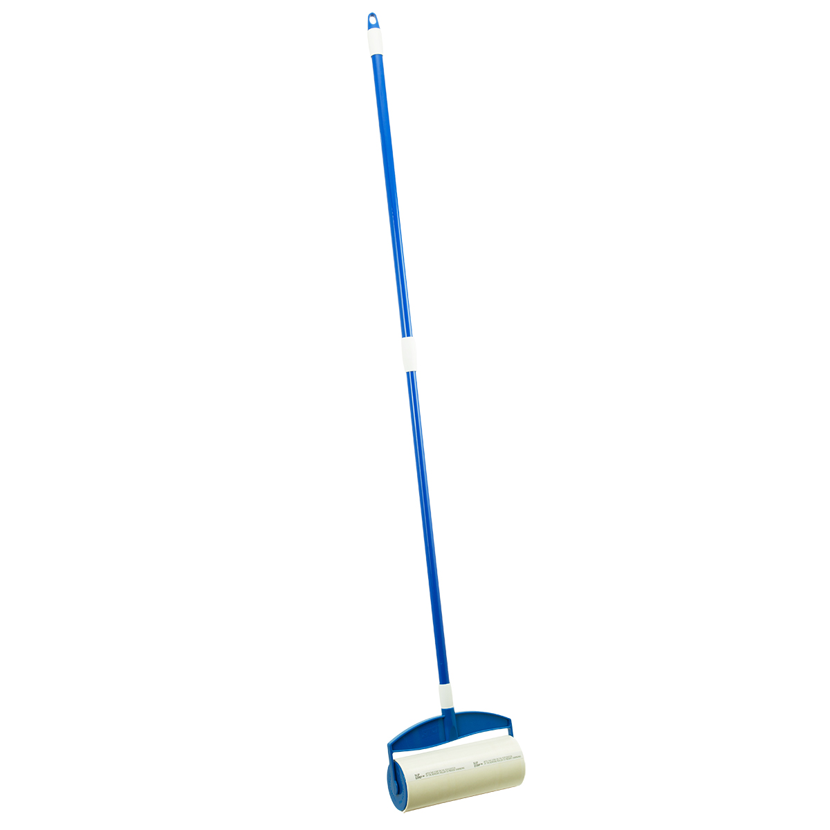 Designed with a 9-inch adhesive roller this mop can easily pick up unwanted pet hair dust dirt and debris. The refillable roll sits on the bottom of a 53-inch extender handle with swivel base. Perfect for use on hard surfaces this mop also works well on carpets and in cars. Make cleaning up your home a breeze with this disposable sticky mop! Details: Adhesive roller mop 9-inch wide refillable roller 53-inch extending resin coated steel handle Swivels Easy tear off sheets Works on hard surfaces or carpet.Specifications